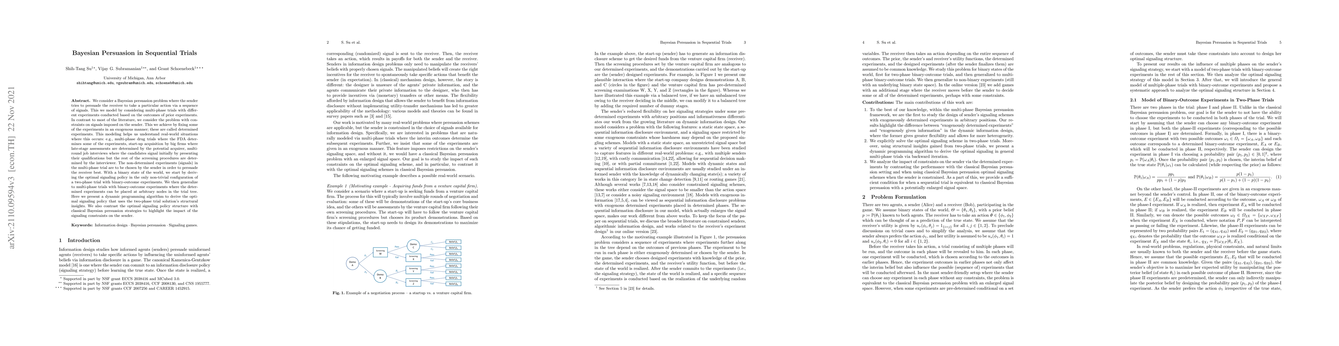 We consider a Bayesian persuasion or information design problem where the sender tries to persuade the receiver to take a particular action via a sequence of signals. This we model by considering multi-phase trials with different experiments conducted based on the outcomes of prior experiments. In contrast to most of the literature, we consider the problem with constraints on signals imposed on the sender. This we achieve by fixing some of the experiments in an exogenous manner; these are called determined experiments. This modeling helps us understand real-world situations where this occurs: e.g., multi-phase drug trials where the FDA determines some of the experiments, funding of a startup by a venture capital firm, start-up acquisition by big firms where late-stage assessments are determined by the potential acquirer, multi-round job interviews where the candidates signal initially by presenting their qualifications but the rest of the screening procedures are determined by the interviewer. The non-determined experiments (signals) in the multi-phase trial are to be chosen by the sender in order to persuade the receiver best. With a binary state of the world, we start by deriving the optimal signaling policy in the only non-trivial configuration of a two-phase trial with binary-outcome experiments. We then generalize to multi-phase trials with binary-outcome experiments where the determined experiments can be placed at any chosen node in the trial tree. Here we present a dynamic programming algorithm to derive the optimal signaling policy that uses the two-phase trial solution's structural insights. We also contrast the optimal signaling policy structure with classical Bayesian persuasion strategies to highlight the impact of the signaling constraints on the sender.