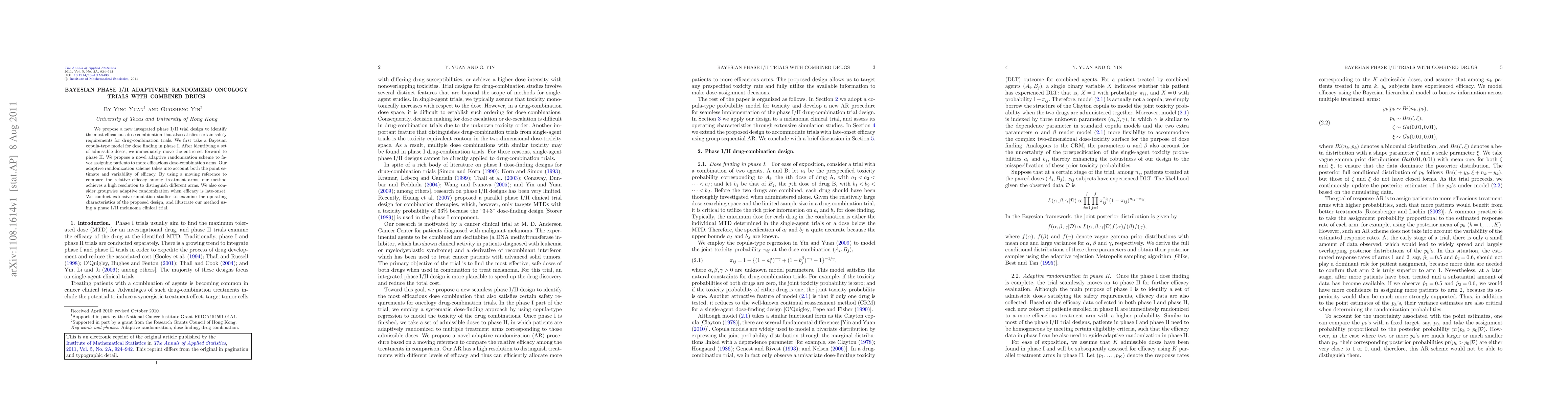 A new trial design combines Bayesian dose-finding with adaptive randomization to identify effective drug combinations while ensuring safety, offering a high resolution for distinguishing between treatment arms.