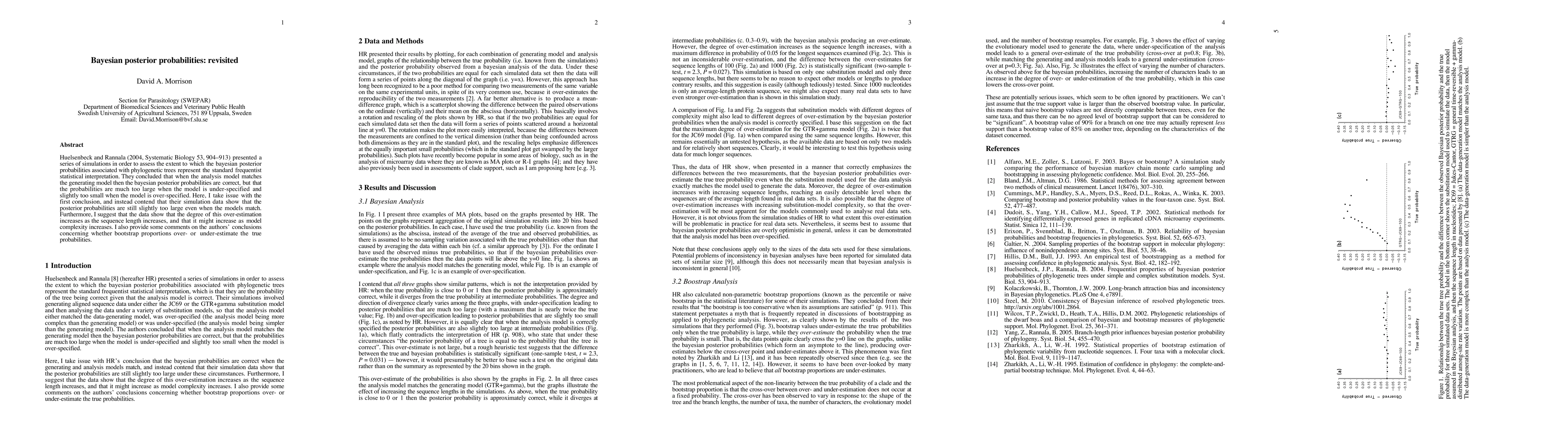 This paper critiques Huelsenbeck and Rannala's (2004) findings on Bayesian posterior probabilities in phylogenetic analysis, arguing that posterior probabilities remain overestimated even when the analysis model matches the generating model. The author also suggests that this overestimation increases with longer sequences and potentially more complex models.