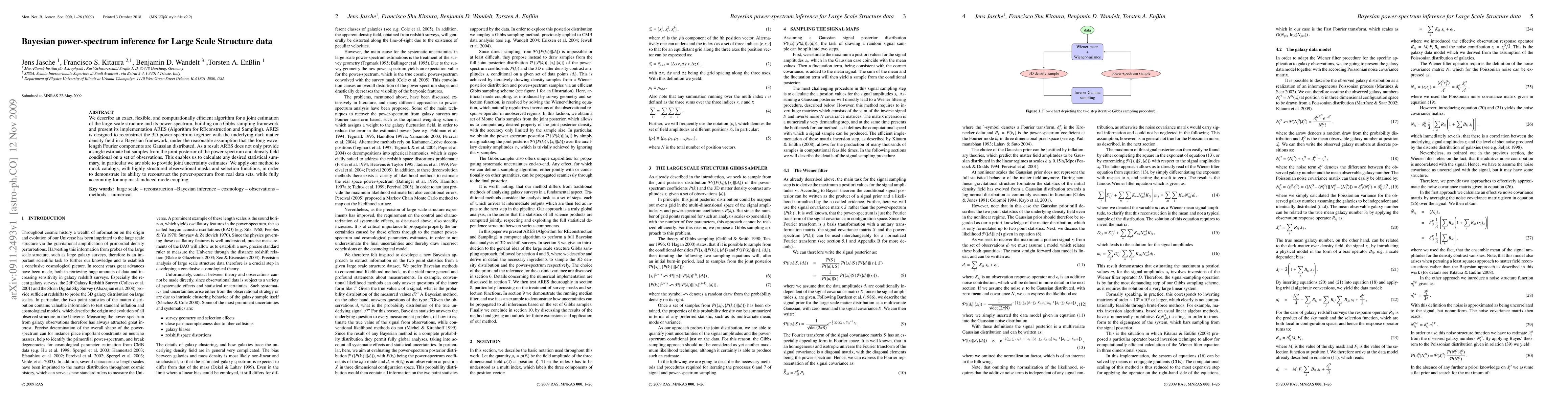 This paper introduces ARES, a Bayesian algorithm for reconstructing the 3D power-spectrum and dark matter density field from Large Scale Structure data, using a Gibbs sampling framework. ARES provides probabilistic estimates and joint uncertainty measures, validated through mock catalogs with complex observational masks.