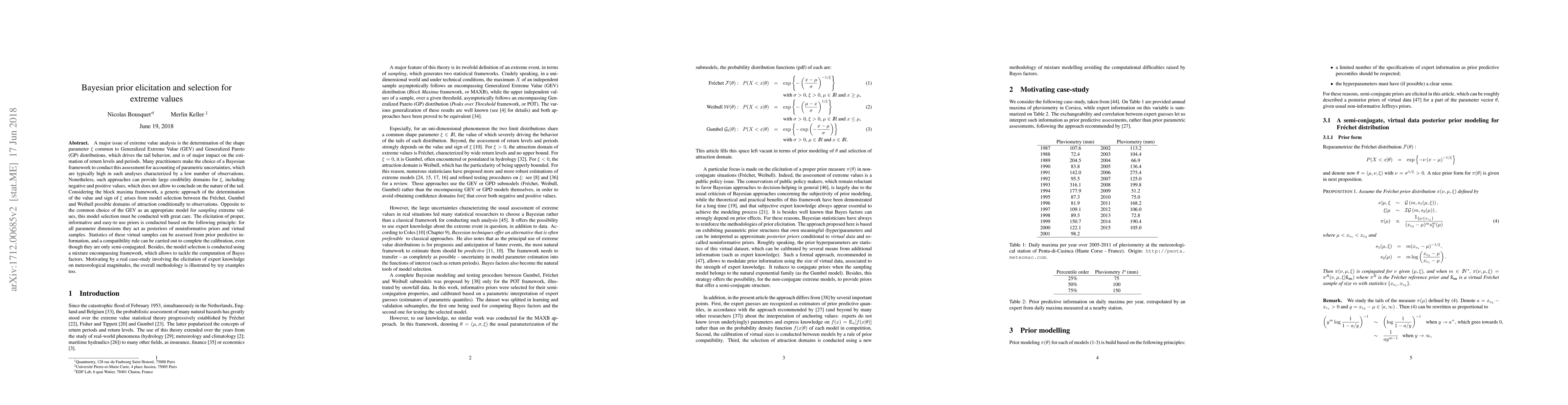 This paper presents a method for determining the shape parameter of extreme value distributions using Bayesian prior elicitation and selection, allowing for more accurate estimation of return levels and periods with lower observation counts.
