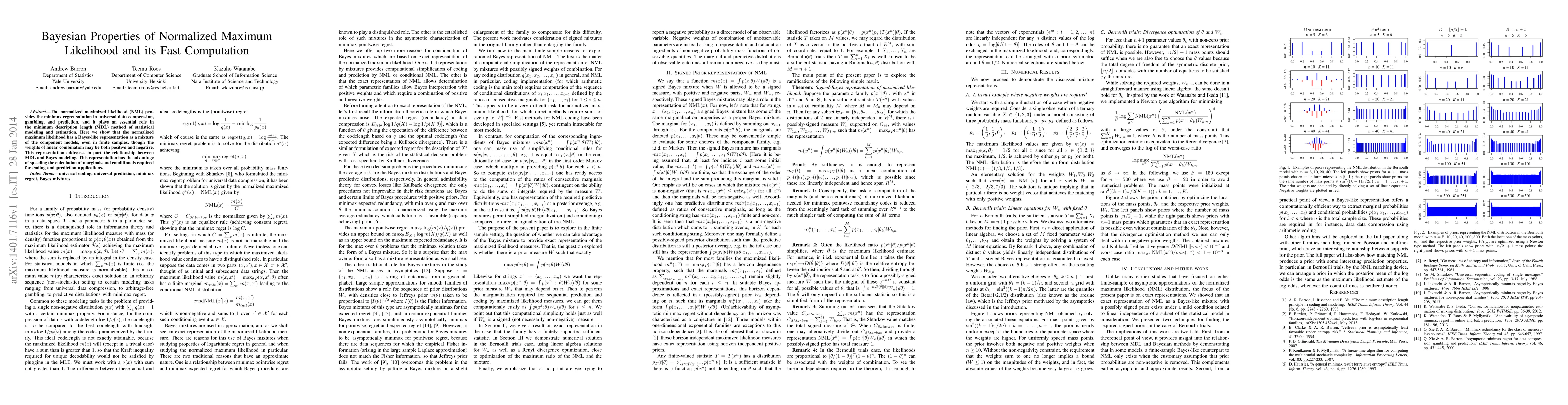 The normalized maximized likelihood (NML) provides the minimax regret solution in universal data compression, gambling, and prediction, and it plays an essential role in the minimum description length (MDL) method of statistical modeling and estimation. Here we show that the normalized maximum likelihood has a Bayes-like representation as a mixture of the component models, even in finite samples, though the weights of linear combination may be both positive and negative. This representation addresses in part the relationship between MDL and Bayes modeling. This representation has the advantage of speeding the calculation of marginals and conditionals required for coding and prediction applications.