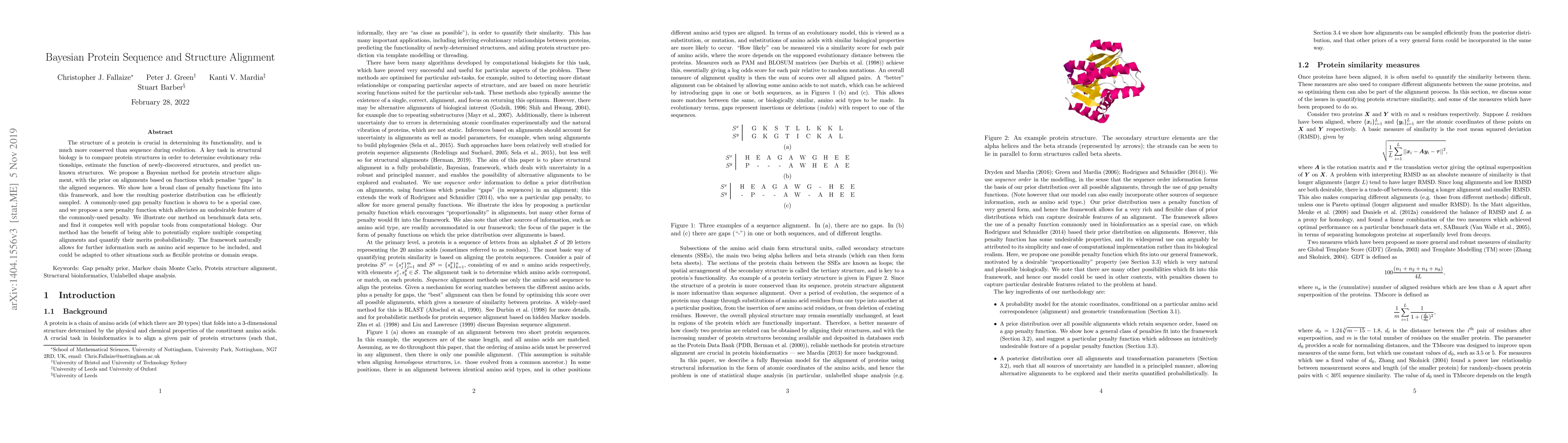 The paper presents a Bayesian method for protein structure alignment, incorporating a prior on alignments that penalizes gaps and allows for a broad class of penalty functions. The posterior distribution is efficiently sampled, with a commonly-used gap penalty function shown as a special case and a new penalty function proposed.