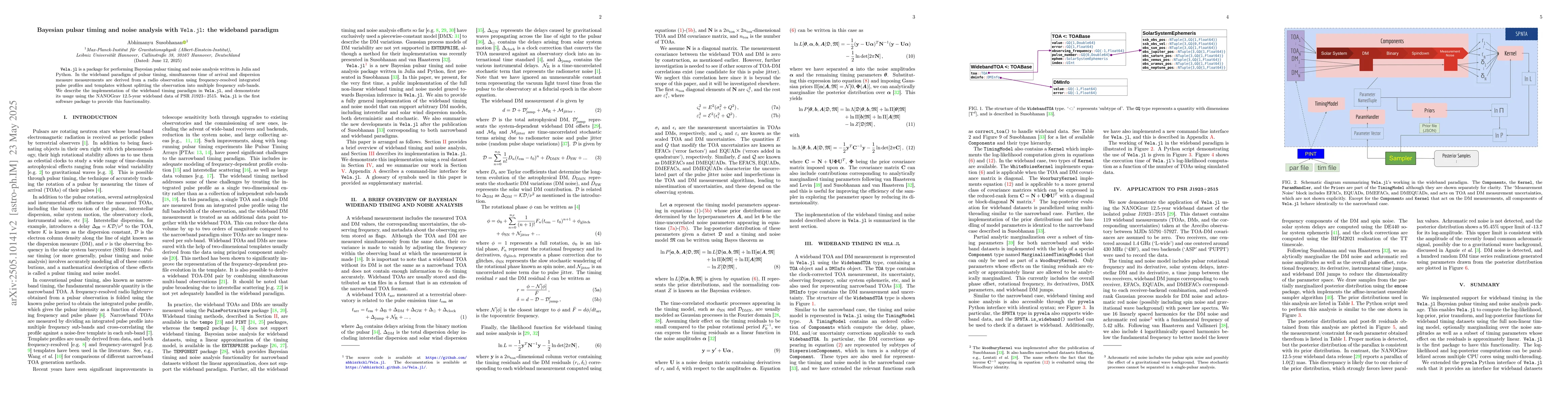 The research describes the implementation of the wideband timing paradigm in Vela.jl, a package for Bayesian pulsar timing & noise analysis, using NANOGrav 12.5-year wideband data of PSR J1923+2515 as a demonstration.