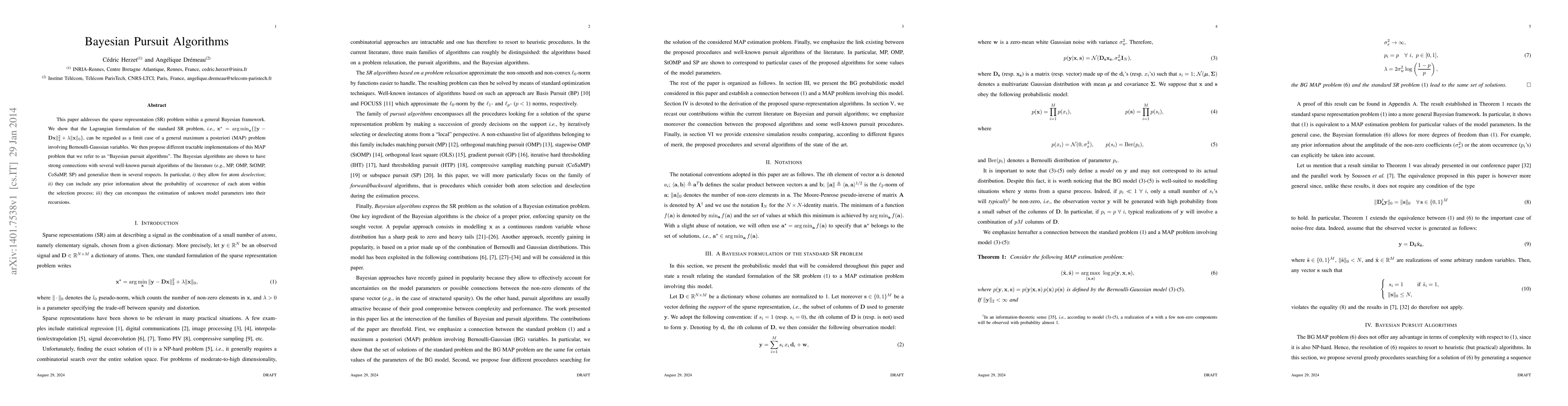 Researchers propose Bayesian pursuit algorithms as a general framework for sparse representation problems, allowing for atom deselection and incorporation of prior information, with connections to well-known pursuit algorithms.