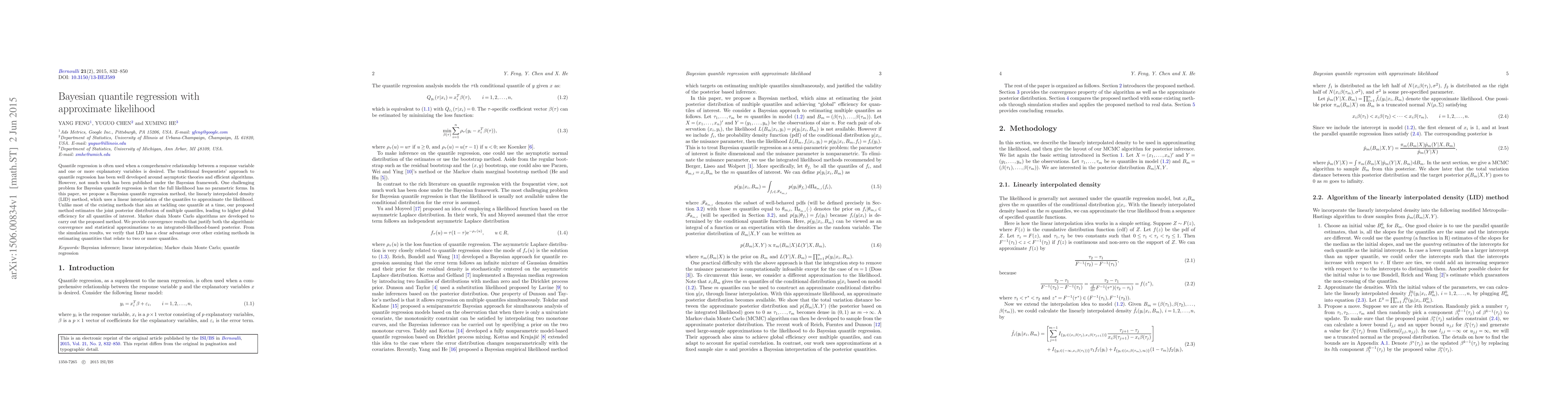 This paper introduces a Bayesian quantile regression method called the linearly interpolated density (LID) method, which approximates the likelihood using linear interpolation of quantiles. The proposed method estimates the joint posterior distribution of multiple quantiles, offering higher global efficiency compared to existing methods.