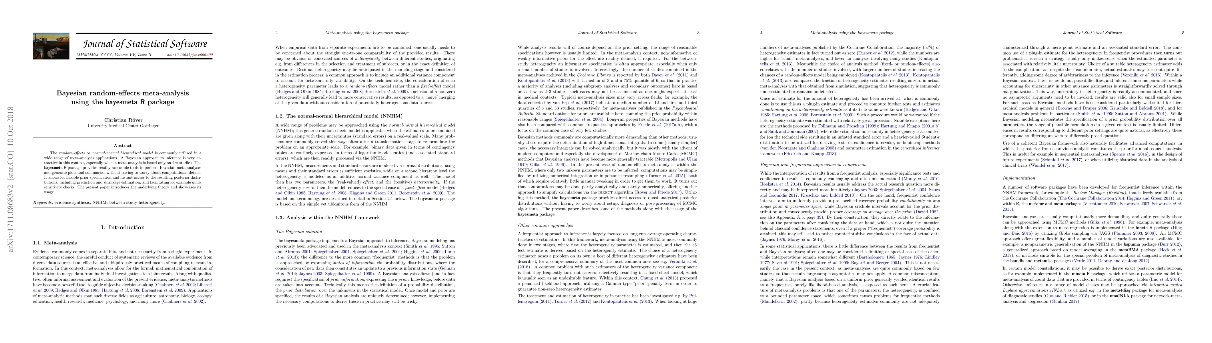 This paper introduces the bayesmeta R package for performing Bayesian random-effects meta-analysis, offering tools for flexible prior specification and generating posterior distributions, including prediction and shrinkage estimation, with ease of use and minimal computational complexity. The paper also demonstrates the package's functionality and its benefits for sensitivity checks.