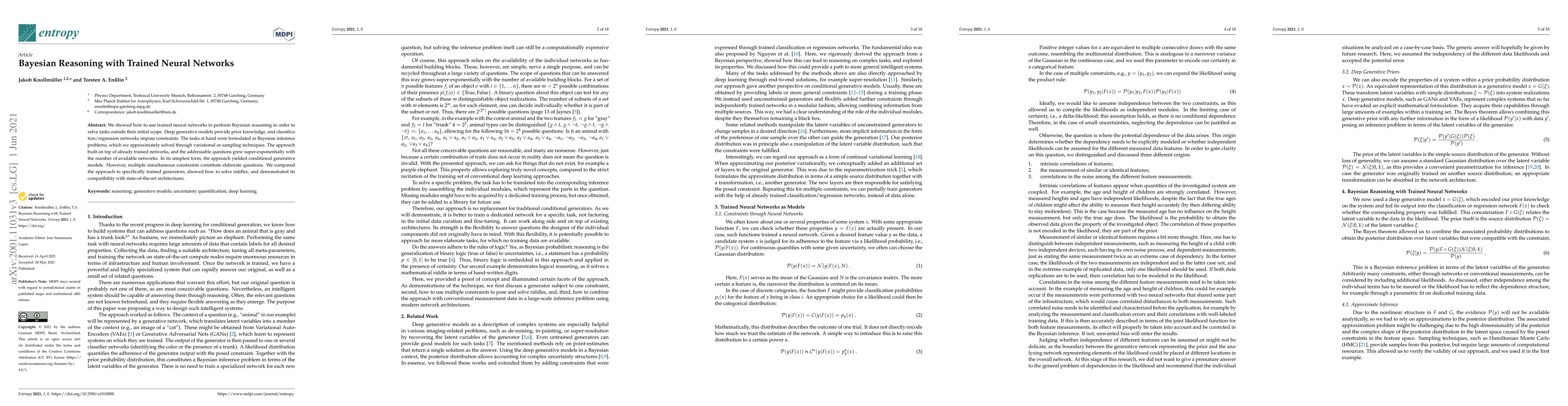 We showed how to use trained neural networks to perform Bayesian reasoning in order to solve tasks outside their initial scope. Deep generative models provide prior knowledge, and classification/regression networks impose constraints. The tasks at hand were formulated as Bayesian inference problems, which we approximately solved through variational or sampling techniques. The approach built on top of already trained networks, and the addressable questions grew super-exponentially with the number of available networks. In its simplest form, the approach yielded conditional generative models. However, multiple simultaneous constraints constitute elaborate questions. We compared the approach to specifically trained generators, showed how to solve riddles, and demonstrated its compatibility with state-of-the-art architectures.