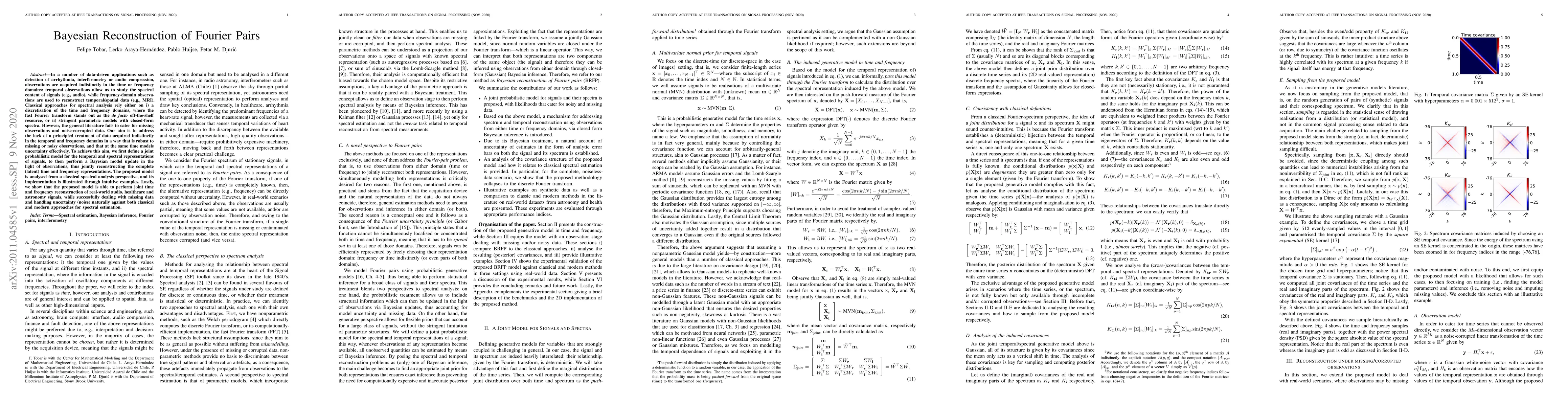 In a number of data-driven applications such as detection of arrhythmia, interferometry or audio compression, observations are acquired indistinctly in the time or frequency domains: temporal observations allow us to study the spectral content of signals (e.g., audio), while frequency-domain observations are used to reconstruct temporal/spatial data (e.g., MRI). Classical approaches for spectral analysis rely either on i) a discretisation of the time and frequency domains, where the fast Fourier transform stands out as the \textit{de facto} off-the-shelf resource, or ii) stringent parametric models with closed-form spectra. However, the general literature fails to cater for missing observations and noise-corrupted data. Our aim is to address the lack of a principled treatment of data acquired indistinctly in the temporal and frequency domains in a way that is robust to missing or noisy observations, and that at the same time models uncertainty effectively. To achieve this aim, we first define a joint probabilistic model for the temporal and spectral representations of signals, to then perform a Bayesian model update in the light of observations, thus jointly reconstructing the complete (latent) time and frequency representations. The proposed model is analysed from a classical spectral analysis perspective, and its implementation is illustrated through intuitive examples. Lastly, we show that the proposed model is able to perform joint time and frequency reconstruction of real-world audio, healthcare and astronomy signals, while successfully dealing with missing data and handling uncertainty (noise) naturally against both classical and modern approaches for spectral estimation.