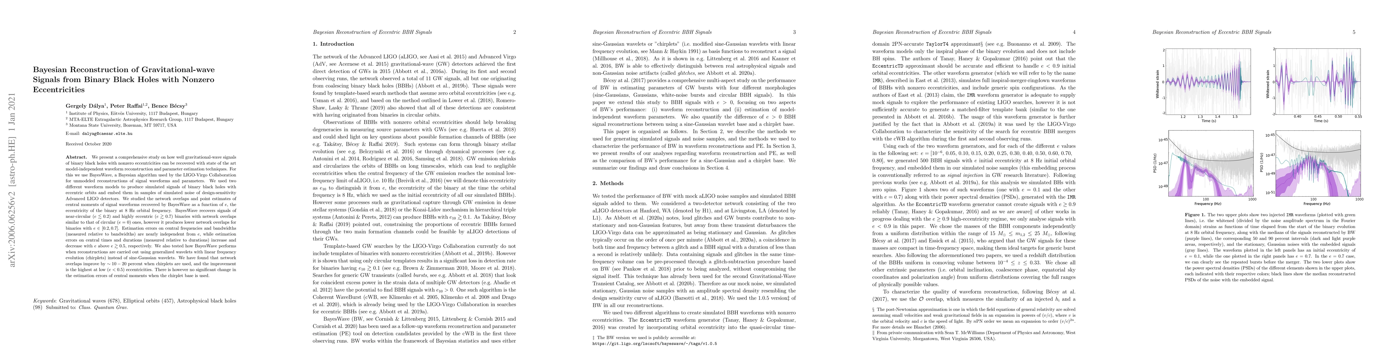 This paper investigates the effectiveness of BayesWave in reconstructing gravitational-wave signals from binary black holes with nonzero eccentricities. It shows that BayesWave performs well for near-circular and highly eccentric binaries but struggles with moderate eccentricities, while estimation errors vary with eccentricity. Chirplets improve network overlaps by 10-20%, especially for low eccentricities.