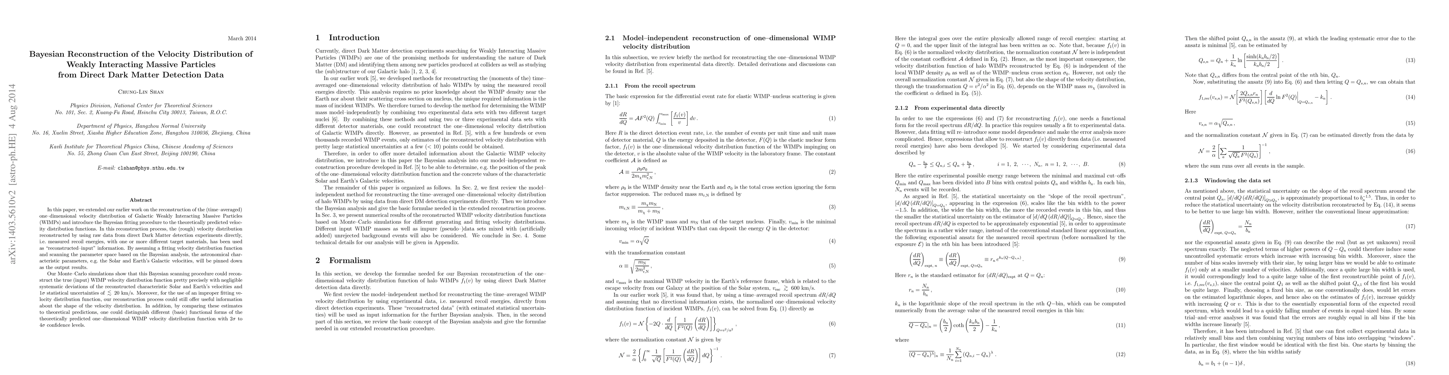 In this paper, we extended our earlier work on the reconstruction of the (time-averaged) one-dimensional velocity distribution of Galactic Weakly Interacting Massive Particles (WIMPs) and introduce the Bayesian fitting procedure to the theoretically predicted velocity distribution functions. In this reconstruction process, the (rough) velocity distribution reconstructed by using raw data from direct Dark Matter detection experiments directly, i.e. measured recoil energies, with one or more different target materials, has been used as "reconstructed-input" information. By assuming a fitting velocity distribution function and scanning the parameter space based on the Bayesian analysis, the astronomical characteristic parameters, e.g. the Solar and Earth's Galactic velocities, will be pinned down as the output results. Our Monte-Carlo simulations show that this Bayesian scanning procedure could reconstruct the true (input) WIMP velocity distribution function pretty precisely with negligible systematic deviations of the reconstructed characteristic Solar and Earth's velocities and 1 sigma statistical uncertainties of <~ 20 km/s. Moreover, for the use of an improper fitting velocity distribution function, our reconstruction process could still offer useful information about the shape of the velocity distribution. In addition, by comparing these estimates to theoretical predictions, one could distinguish different (basic) functional forms of the theoretically predicted one-dimensional WIMP velocity distribution function with 2 sigma to 4 sigma confidence levels.