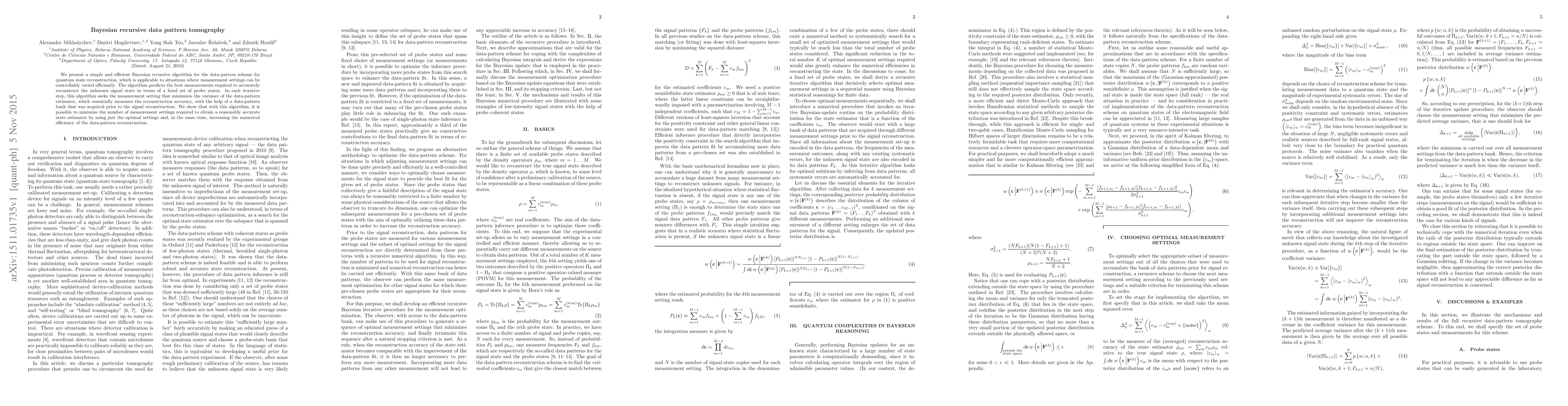We present a simple and efficient Bayesian recursive algorithm for the data-pattern scheme for quantum state reconstruction, which is applicable to situations where measurement settings can be controllably varied efficiently. The algorithm predicts the best measurements required to accurately reconstruct the unknown signal state in terms of a fixed set of probe states. In each iterative step, this algorithm seeks the measurement setting that minimizes the variance of the data-pattern estimator, which essentially measures the reconstruction accuracy, with the help of a data-pattern bank that was acquired prior to the signal reconstruction. We show that with this algorithm, it is possible to minimize the number of measurement settings required to obtain a reasonably accurate state estimator by using just the optimal settings and, at the same time, increasing the numerical efficiency of the data-pattern reconstruction.
