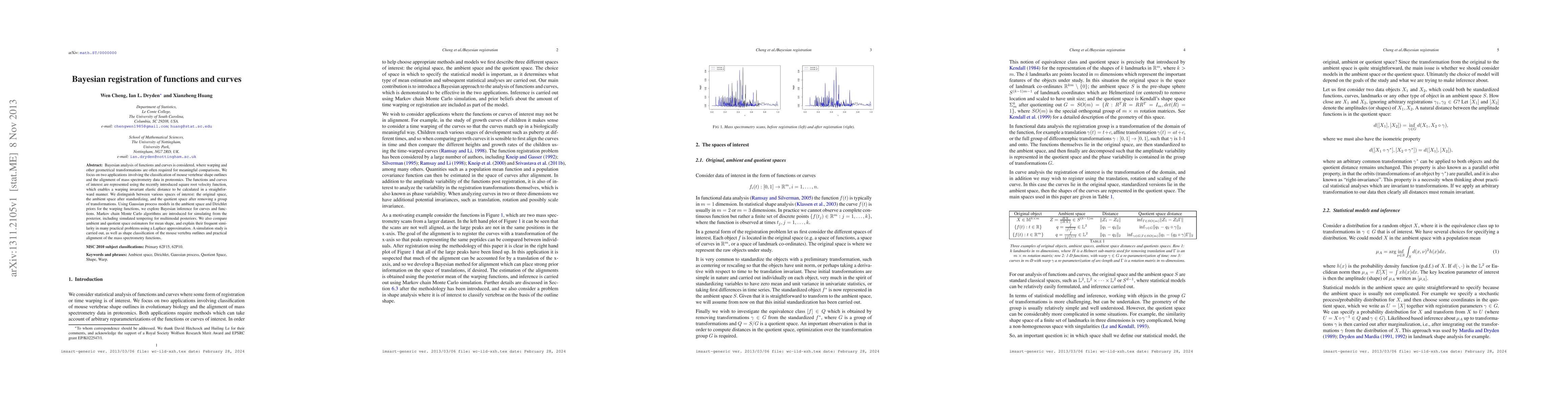 Bayesian analysis of functions and curves is considered, where warping and other geometrical transformations are often required for meaningful comparisons. We focus on two applications involving the classification of mouse vertebrae shape outlines and the alignment of mass spectrometry data in proteomics. The functions and curves of interest are represented using the recently introduced square root velocity function, which enables a warping invariant elastic distance to be calculated in a straightforward manner. We distinguish between various spaces of interest: the original space, the ambient space after standardizing, and the quotient space after removing a group of transformations. Using Gaussian process models in the ambient space and Dirichlet priors for the warping functions, we explore Bayesian inference for curves and functions. Markov chain Monte Carlo algorithms are introduced for simulating from the posterior, including simulated tempering for multimodal posteriors. We also compare ambient and quotient space estimators for mean shape, and explain their frequent similarity in many practical problems using a Laplace approximation. A simulation study is carried out, as well as shape classification of the mouse vertebra outlines and practical alignment of the mass spectrometry functions.