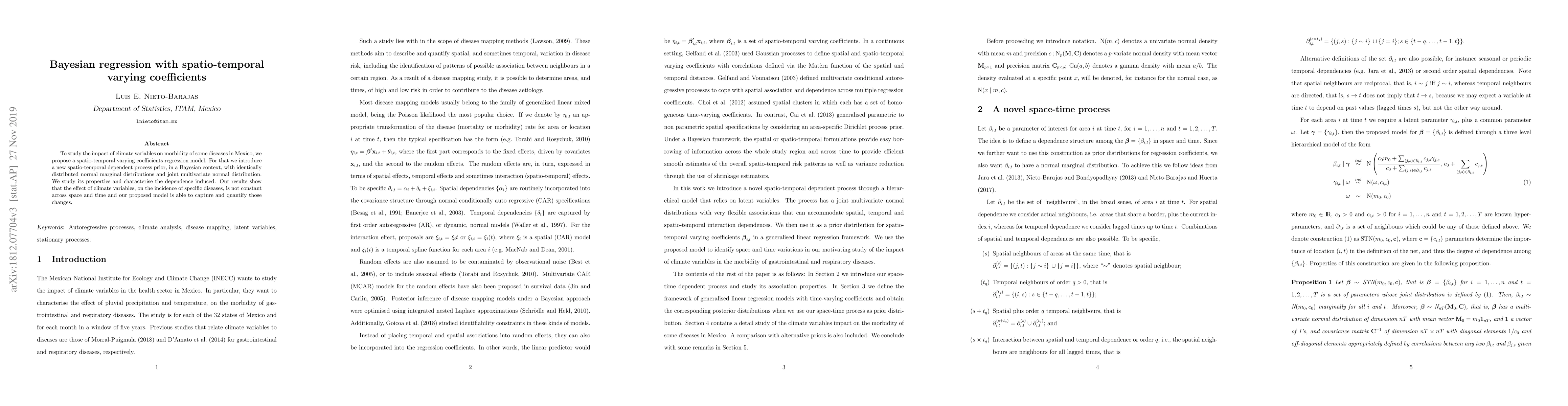 This paper proposes a Bayesian spatio-temporal varying coefficients regression model to study the impact of climate variables on disease morbidity in Mexico. The model captures non-constant effects of climate on disease incidence across space and time, demonstrating its effectiveness in quantifying these spatio-temporal variations.