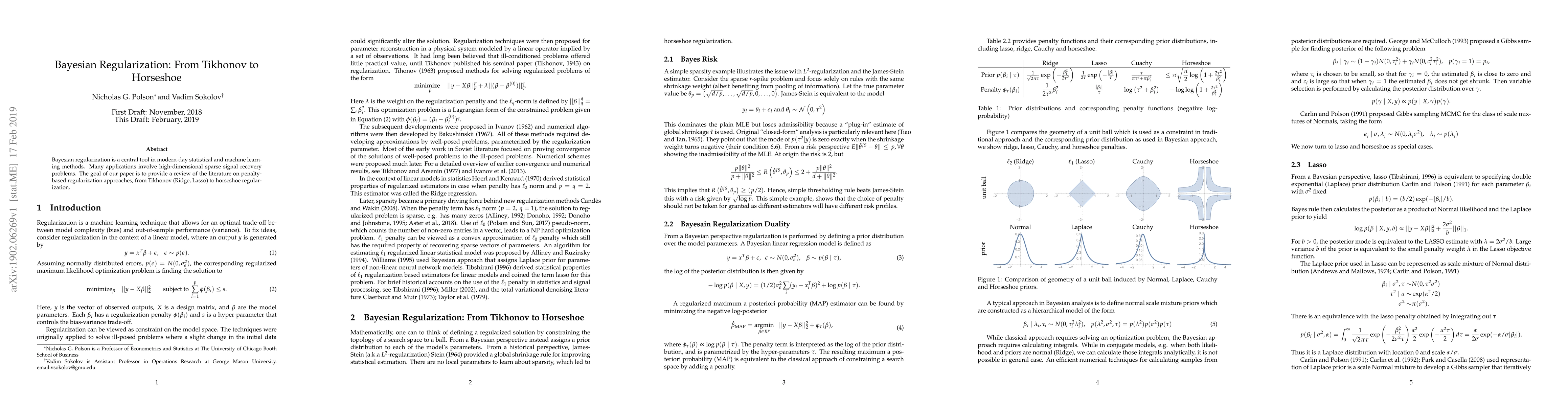 Bayesian regularization is a central tool in modern-day statistical and machine learning methods. Many applications involve high-dimensional sparse signal recovery problems. The goal of our paper is to provide a review of the literature on penalty-based regularization approaches, from Tikhonov (Ridge, Lasso) to horseshoe regularization.