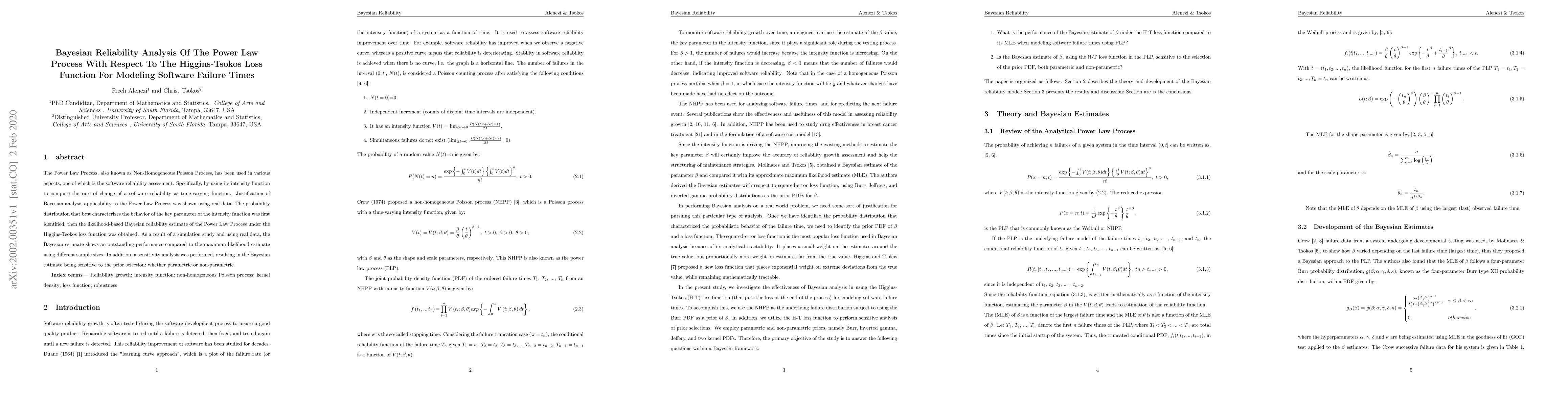 The Power Law Process, also known as Non-Homogeneous Poisson Process, has been used in various aspects, one of which is the software reliability assessment. Specifically, by using its intensity function to compute the rate of change of a software reliability as time-varying function. Justification of Bayesian analysis applicability to the Power Law Process was shown using real data. The probability distribution that best characterizes the behavior of the key parameter of the intensity function was first identified, then the likelihood-based Bayesian reliability estimate of the Power Law Process under the Higgins-Tsokos loss function was obtained. As a result of a simulation study and using real data, the Bayesian estimate shows an outstanding performance compared to the maximum likelihood estimate using different sample sizes. In addition, a sensitivity analysis was performed, resulting in the Bayesian estimate being sensitive to the prior selection; whether parametric or non-parametric.