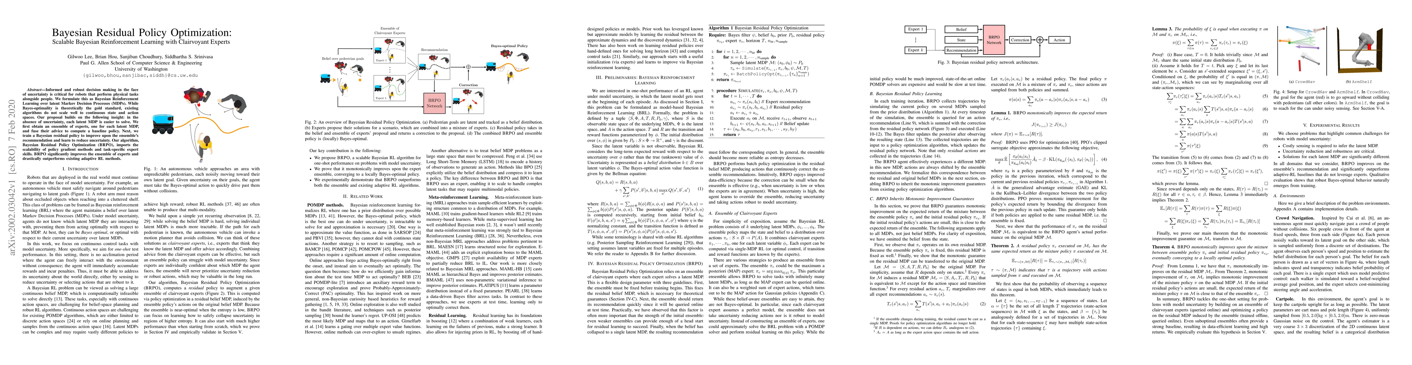This paper proposes Bayesian Residual Policy Optimization (BRPO), a scalable Bayesian Reinforcement Learning approach that leverages clairvoyant experts to handle continuous state and action spaces. BRPO enhances an ensemble of expert policies with a Bayesian residual policy to reduce uncertainty and improve decision-making under uncertainty.
