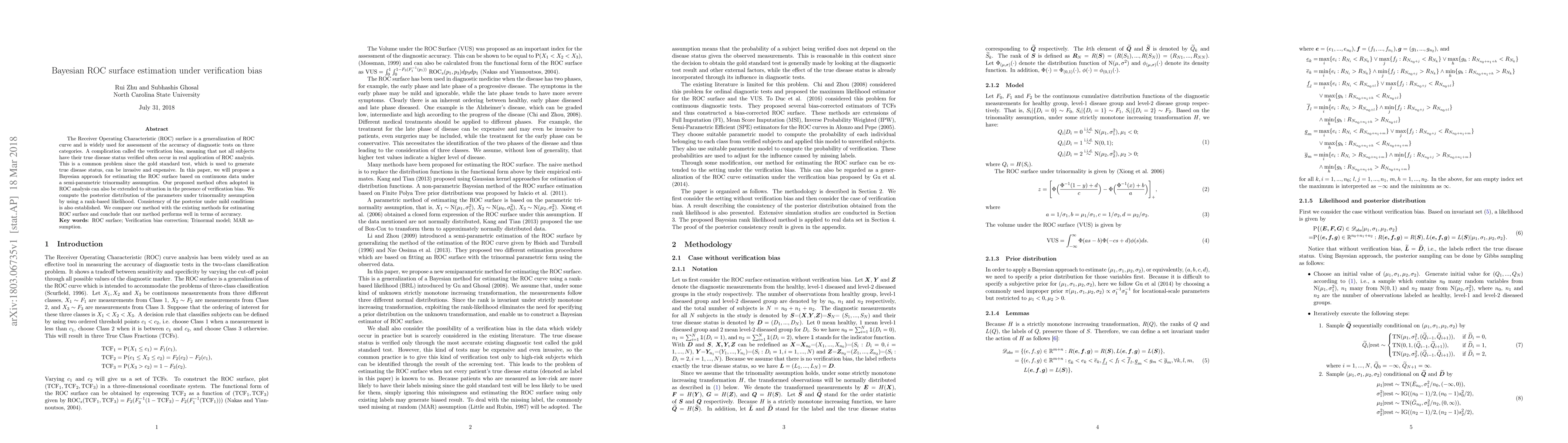 This paper proposes a Bayesian approach to estimate the Receiver Operating Characteristic surface under verification bias, improving accuracy in diagnostic test assessments.