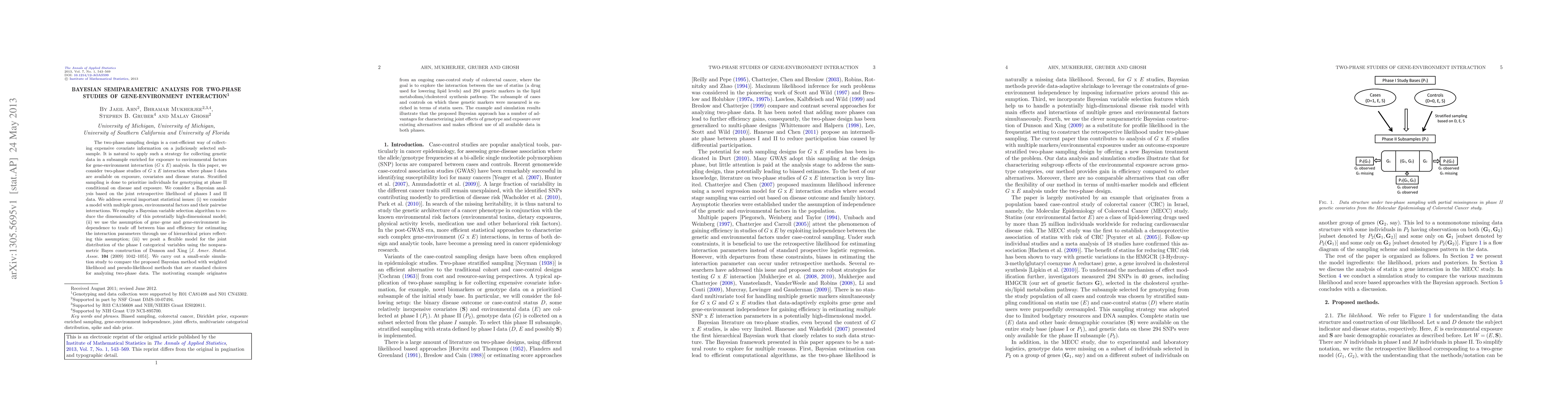 This paper proposes a Bayesian semiparametric approach for analyzing gene-environment interaction in two-phase studies, employing stratified sampling to prioritize genotyping. It addresses statistical issues through Bayesian variable selection, hierarchical priors, and a flexible nonparametric model for phase I data.
