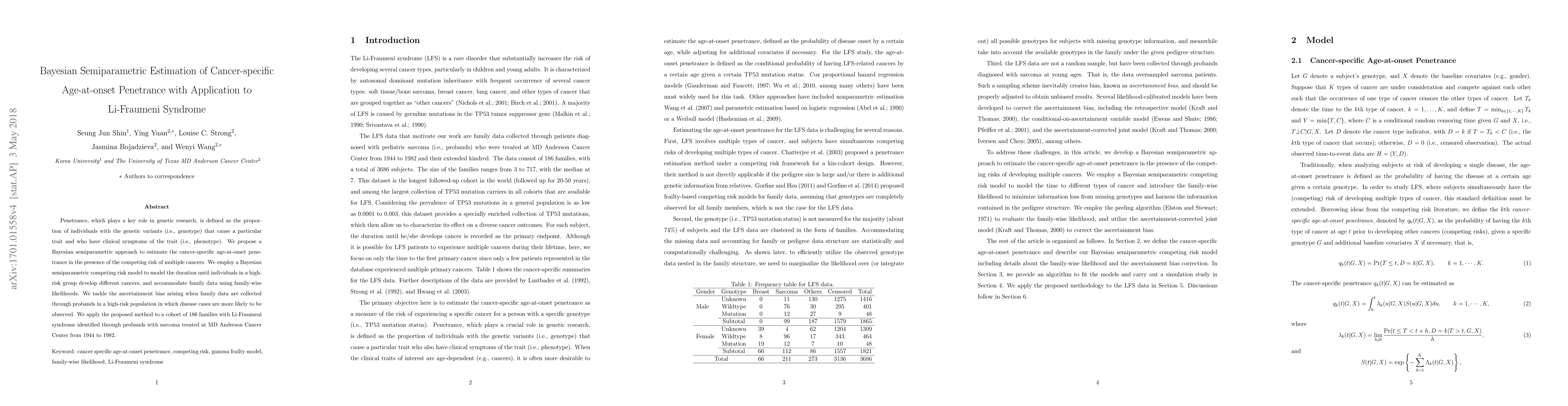 This paper proposes a Bayesian semiparametric approach to estimate cancer-specific age-at-onset penetrance, addressing competing risks and ascertainment bias in high-risk populations. The method is applied to Li-Fraumeni syndrome data, providing insights into the penetrance of cancer in genetically predisposed individuals.