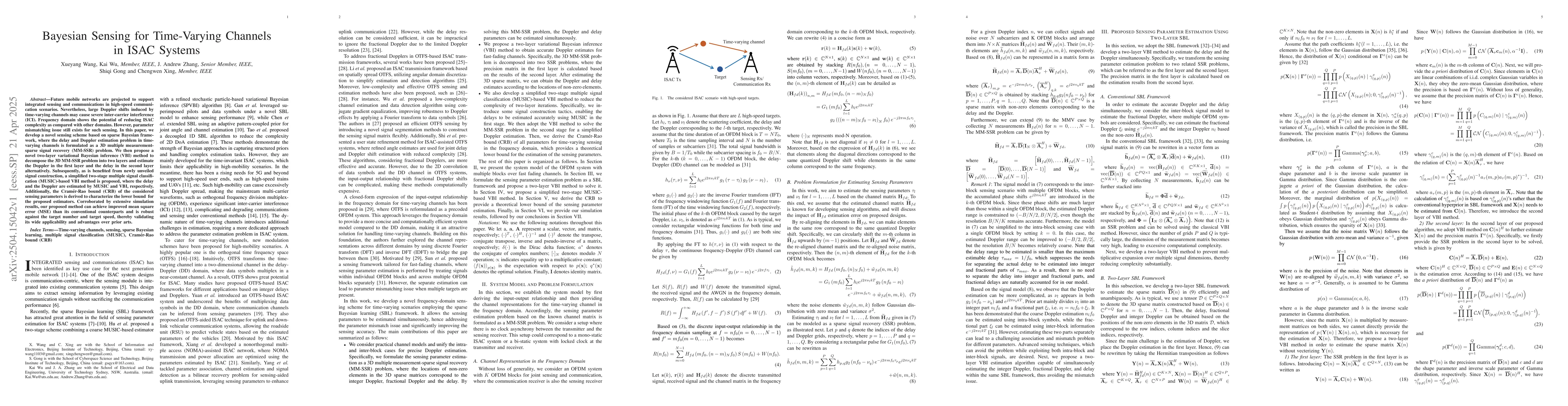 The paper presents a two-layer VBI framework for sensing parameter estimation in time-varying channels, along with a simplified two-stage MUSIC-based VBI method, providing improved accuracy and reduced complexity.