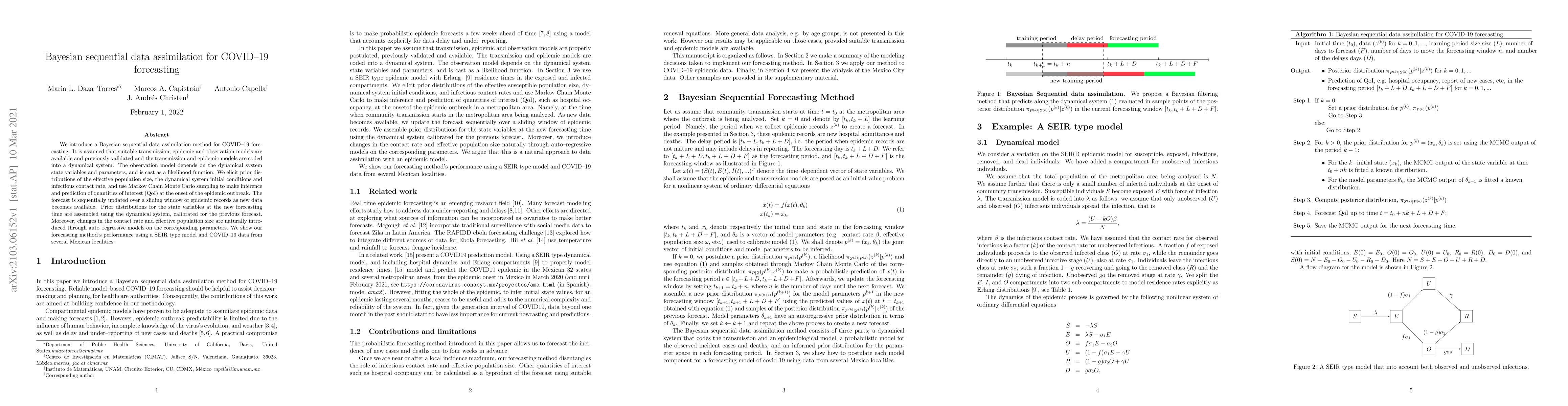 A Bayesian sequential data assimilation method is introduced for COVID-19 forecasting, using prior distributions to infer key parameters and update forecasts sequentially with new data. The method shows promising performance using a SEIR model and real-world data from Mexican localities.