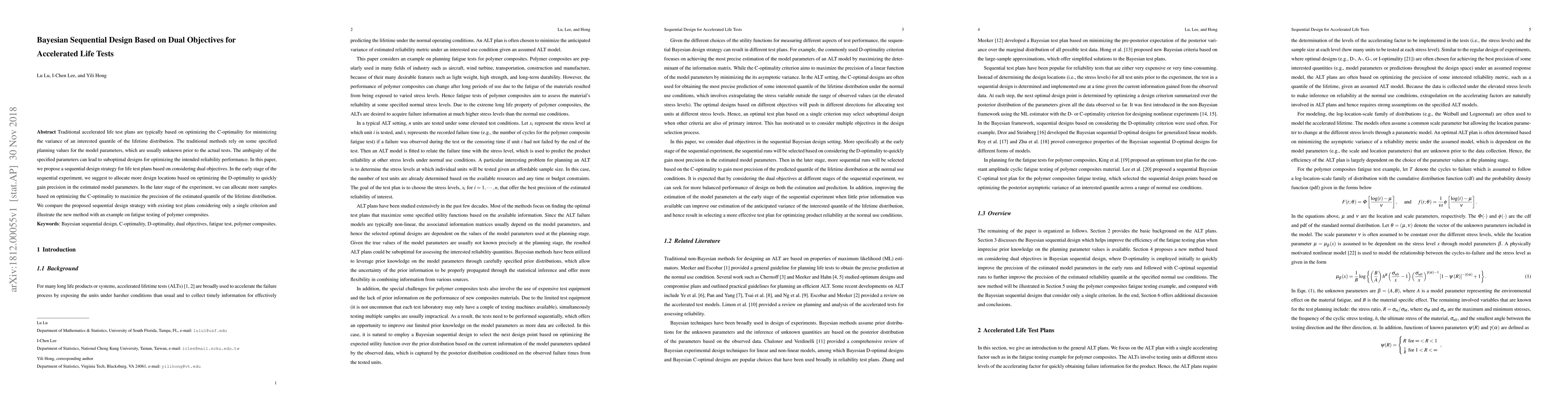 This paper proposes a Bayesian sequential design strategy for accelerated life tests that optimizes both D-optimality and C-optimality. Initially, it focuses on D-optimality to quickly gain precision in model parameter estimates, followed by C-optimality to maximize precision in estimating quantiles of the lifetime distribution. The method is compared with traditional single-criterion designs and demonstrated through an example on polymer composite fatigue testing.