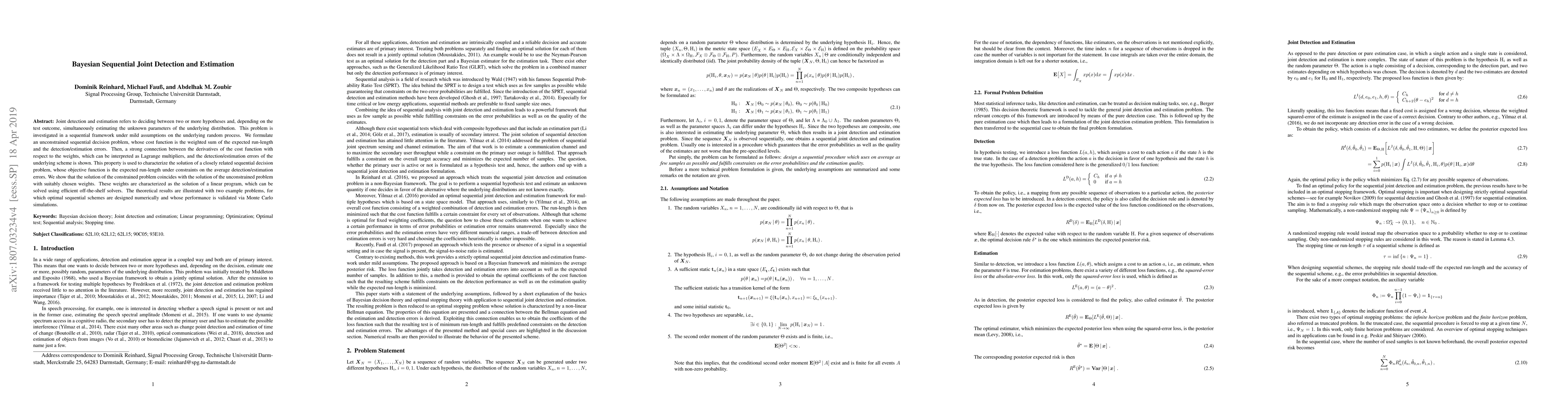 The paper presents a Bayesian sequential joint detection and estimation framework under mild assumptions, formulating an unconstrained sequential decision problem with a weighted sum of expected run-length and detection/estimation errors. It establishes a strong connection between the derivatives of the cost function and the detection/estimation errors, using this to characterize the solution of a constrained problem.