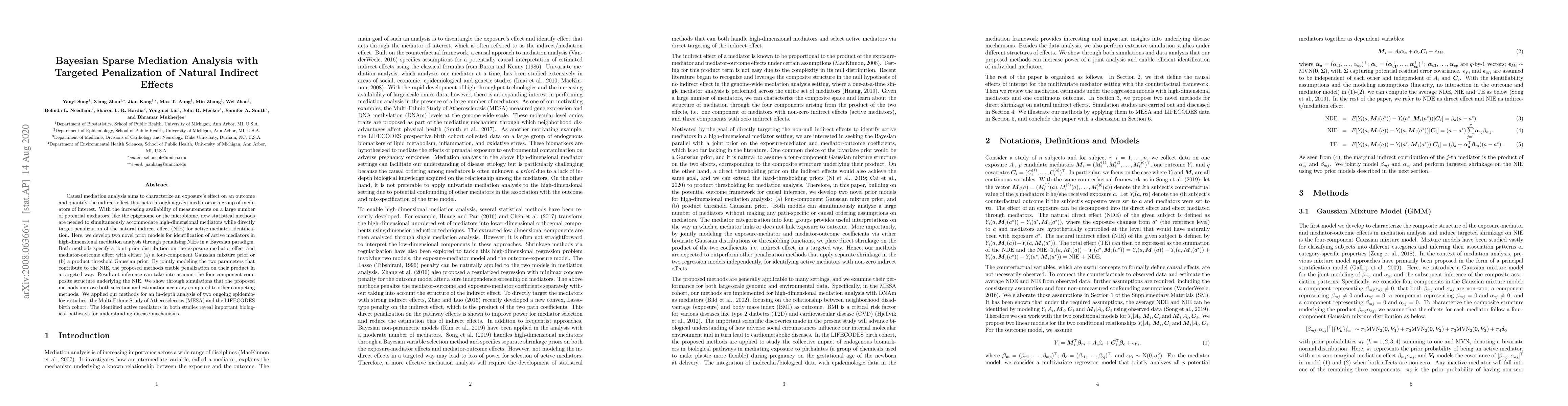 This study develops new Bayesian methods to identify active mediators in high-dimensional mediation analysis, improving accuracy through targeted penalization of natural indirect effects.