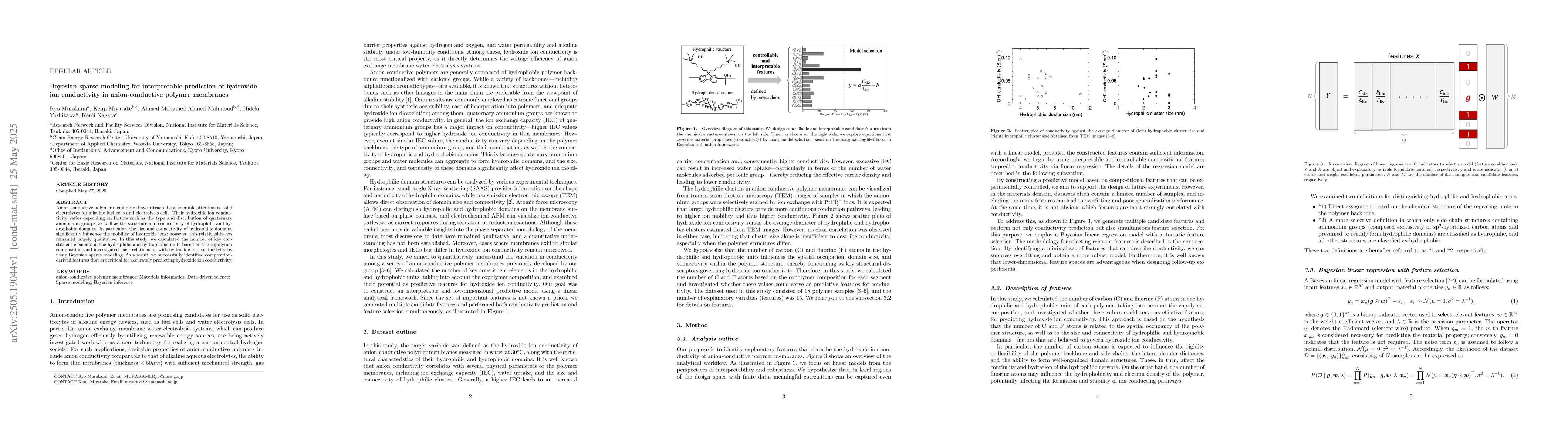 Development and application of Bayesian sparse modeling to elucidate the relationship between membrane composition and hydroxide ion conductivity.