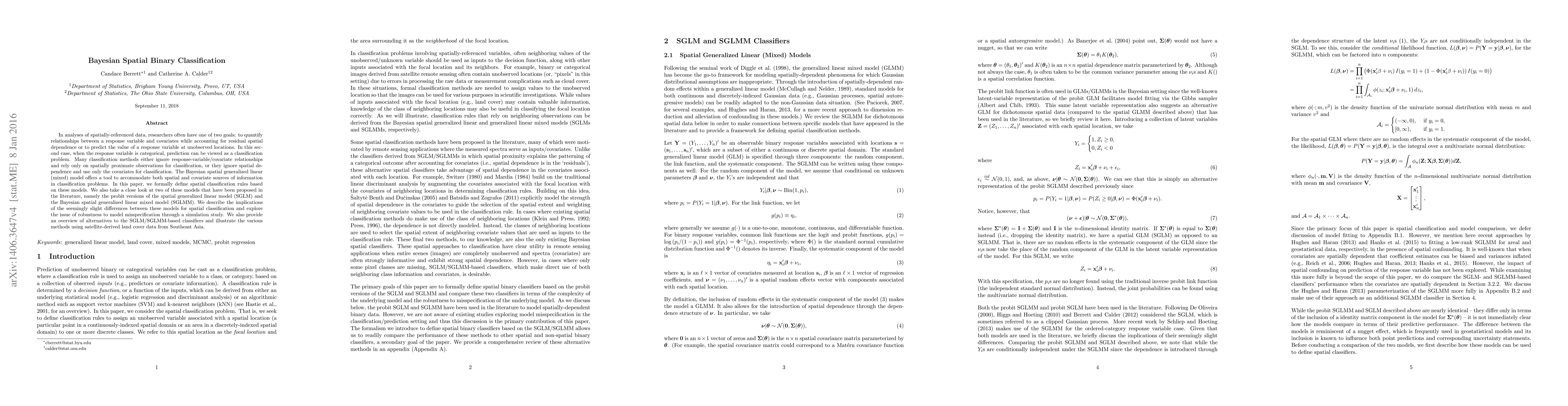 Researchers developed Bayesian spatial binary classification models to predict categorical response variables at unobserved locations while accounting for residual spatial dependence and covariate relationships.