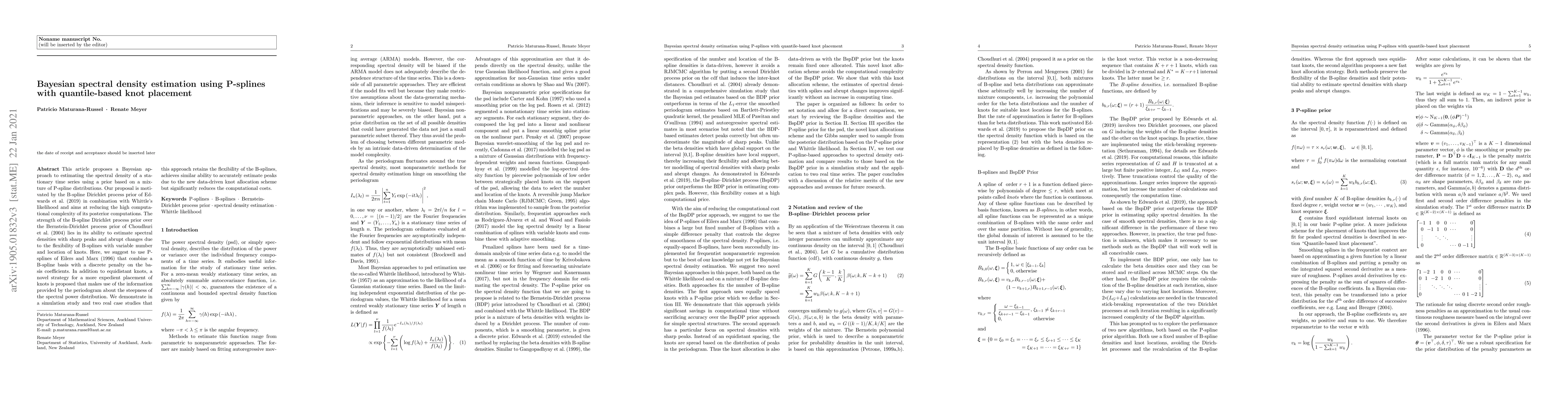 This article proposes a Bayesian approach to estimating the spectral density of a stationary time series using a prior based on a mixture of P-spline distributions. Our proposal is motivated by the B-spline Dirichlet process prior of Edwards et al. (2019) in combination with Whittle's likelihood and aims at reducing the high computational complexity of its posterior computations. The strength of the B-spline Dirichlet process prior over the Bernstein-Dirichlet process prior of Choudhuri et al. (2004) lies in its ability to estimate spectral densities with sharp peaks and abrupt changes due to the flexibility of B-splines with variable number and location of knots. Here, we suggest to use P-splines of Eilers and Marx (1996) that combine a B-spline basis with a discrete penalty on the basis coefficients. In addition to equidistant knots, a novel strategy for a more expedient placement of knots is proposed that makes use of the information provided by the periodogram about the steepness of the spectral power distribution. We demonstrate in a simulation study and two real case studies that this approach retains the flexibility of the B-splines, achieves similar ability to accurately estimate peaks due to the new data-driven knot allocation scheme but significantly reduces the computational costs.