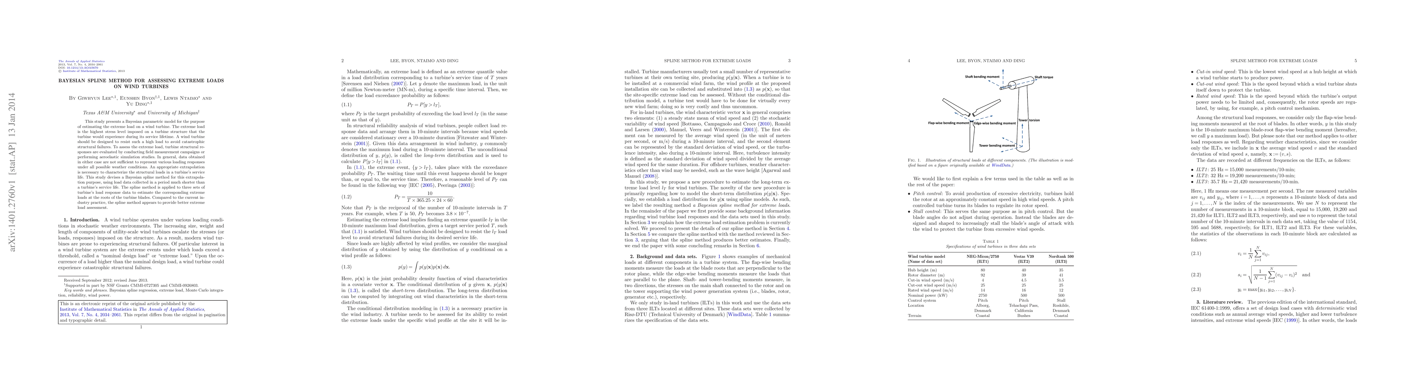 This paper introduces a Bayesian parametric model to estimate extreme loads on wind turbines, employing a Bayesian spline method to extrapolate short-term load data for long-term structural stress assessment, demonstrating superior performance compared to current industry practices.