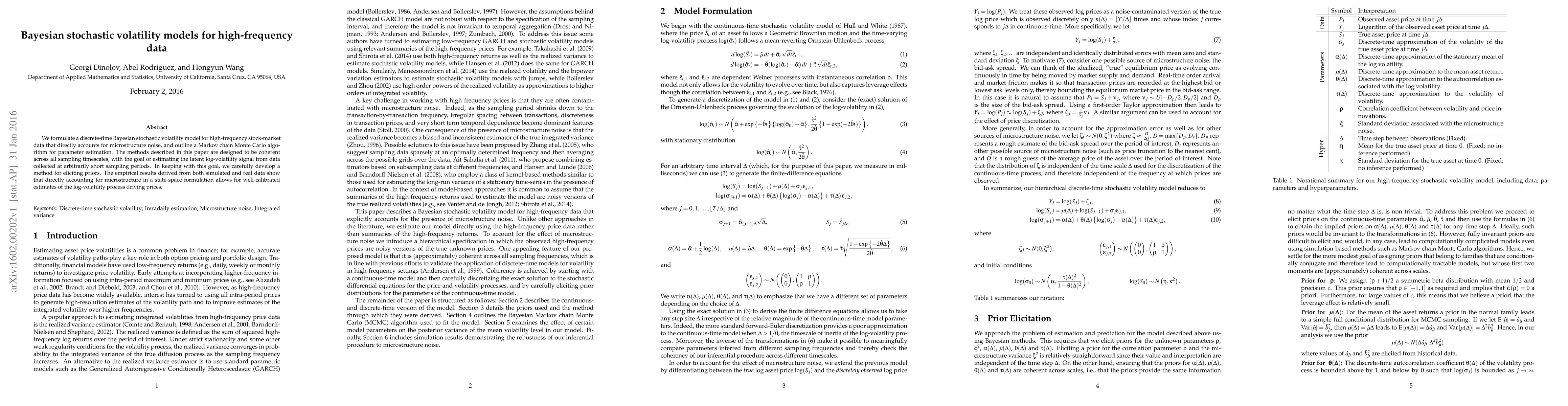 This paper proposes a Bayesian stochastic volatility model for high-frequency stock-market data, incorporating microstructure noise, and uses a Markov chain Monte Carlo algorithm for parameter estimation. The approach provides coherent estimates across all sampling timescales and demonstrates effective log-volatility signal estimation from short sampling periods.