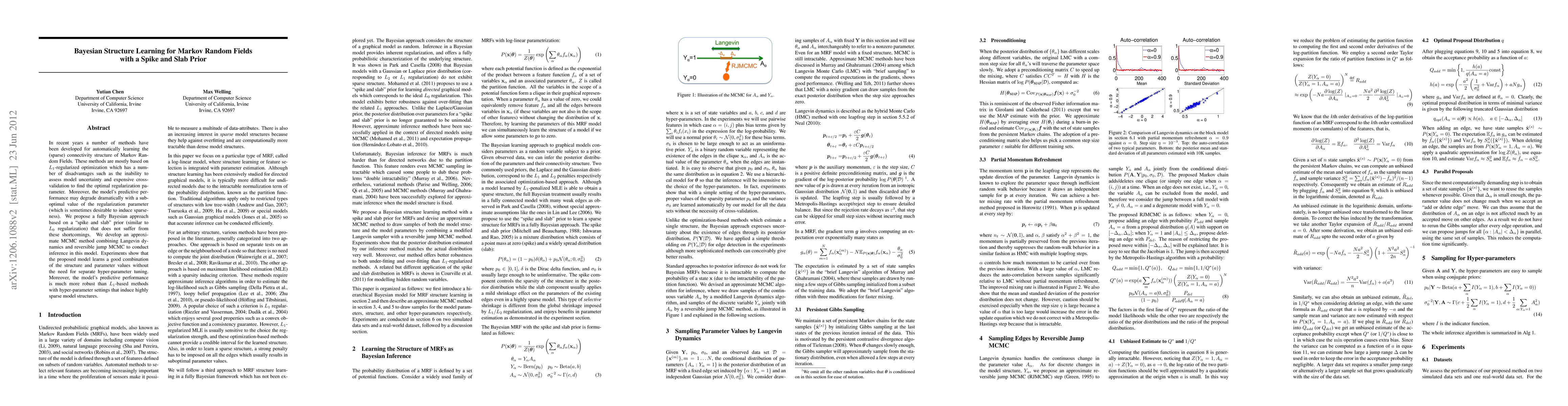A Bayesian approach to learning Markov Random Field structure with a 'spike and slab' prior is proposed, offering robustness to hyper-parameter tuning and improved predictive performance compared to L1-regularized methods.
