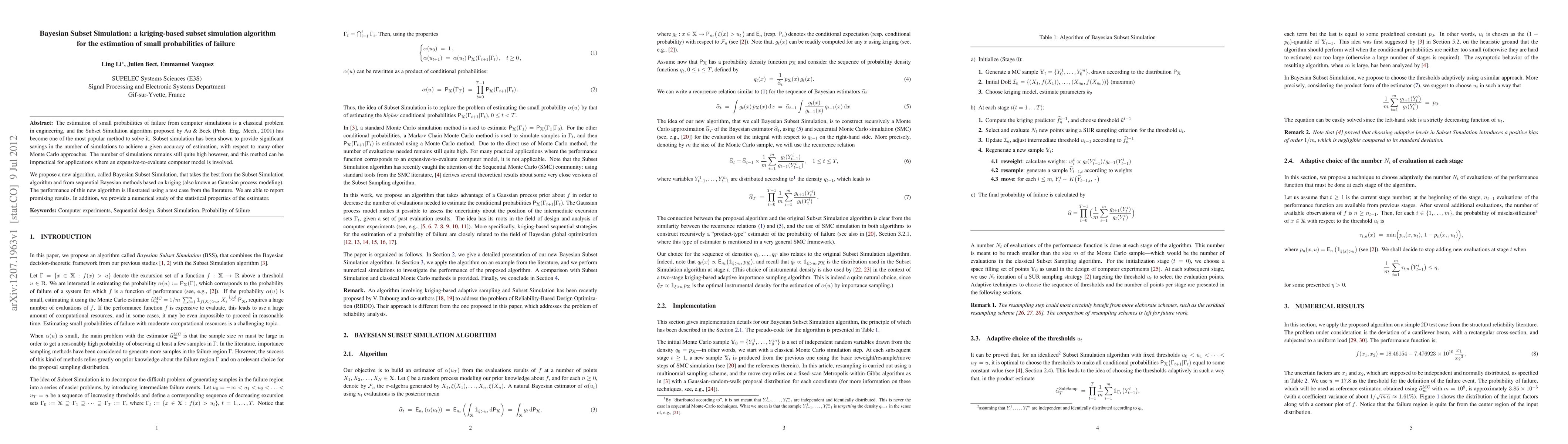 A new algorithm called Bayesian Subset Simulation combines Subset Simulation with kriging to estimate small probabilities of failure from computer simulations more efficiently, offering promising results in a test case.