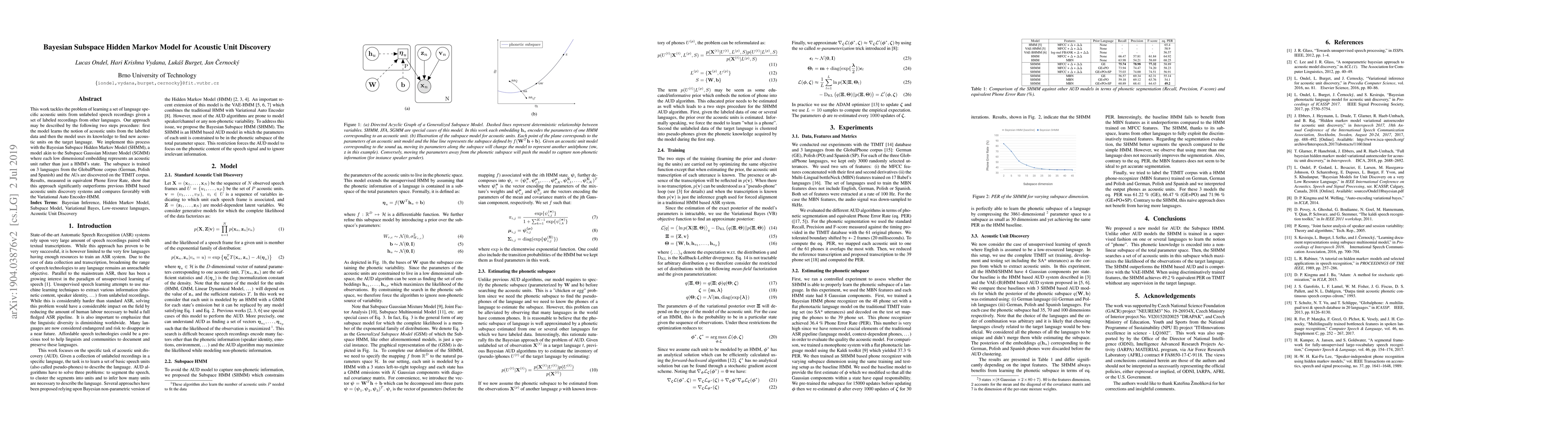 This paper proposes a Bayesian Subspace Hidden Markov Model for discovering language-specific acoustic units from unlabeled speech using labeled data from other languages. The method outperforms previous HMM-based systems and compares favorably with Variational Auto Encoder-HMM, as demonstrated by lower Phone Error Rates.