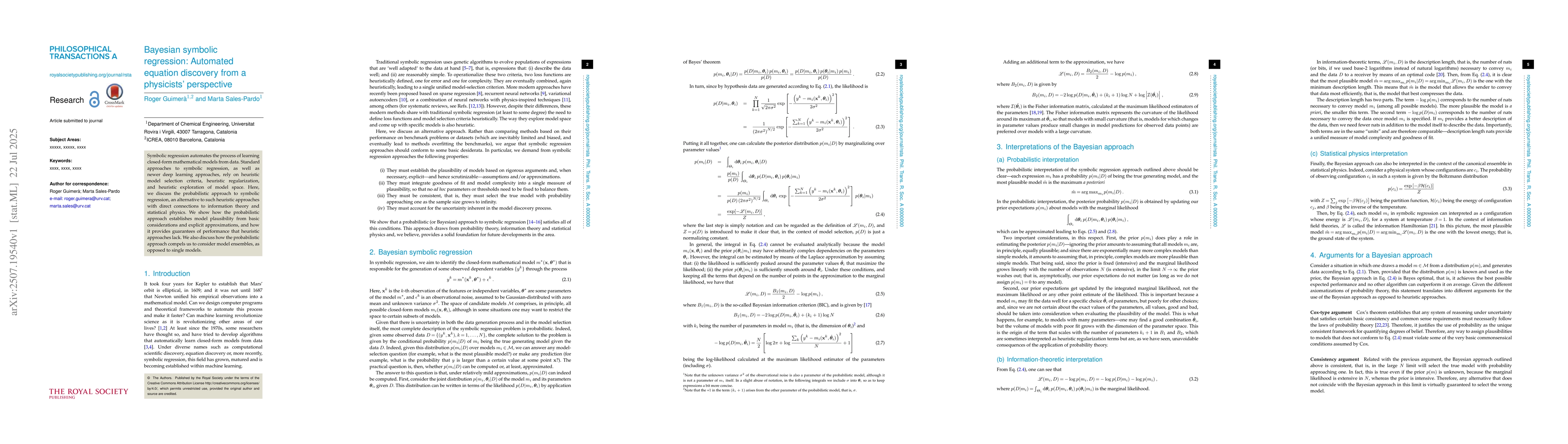Symbolic regression automates the process of learning closed-form mathematical models from data. Standard approaches to symbolic regression, as well as newer deep learning approaches, rely on heuristic model selection criteria, heuristic regularization, and heuristic exploration of model space. Here, we discuss the probabilistic approach to symbolic regression, an alternative to such heuristic approaches with direct connections to information theory and statistical physics. We show how the probabilistic approach establishes model plausibility from basic considerations and explicit approximations, and how it provides guarantees of performance that heuristic approaches lack. We also discuss how the probabilistic approach compels us to consider model ensembles, as opposed to single models.