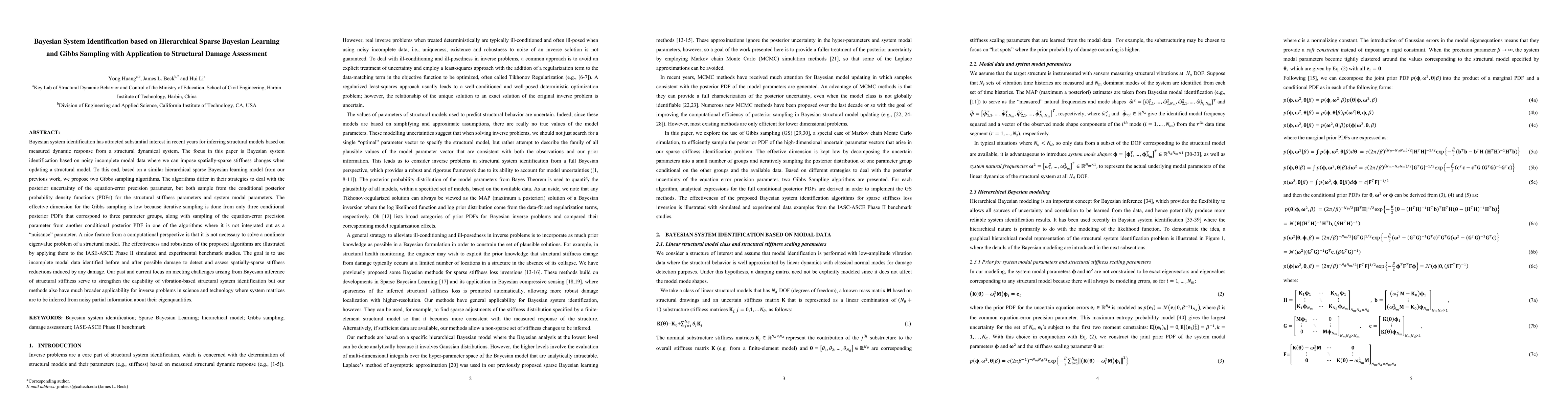 This paper proposes two Gibbs sampling algorithms for Bayesian system identification based on hierarchical sparse Bayesian learning, aimed at detecting spatially-sparse stiffness changes in structural models using incomplete modal data. The algorithms are computationally efficient and avoid solving nonlinear eigenvalue problems, demonstrating effectiveness through simulated and experimental studies.