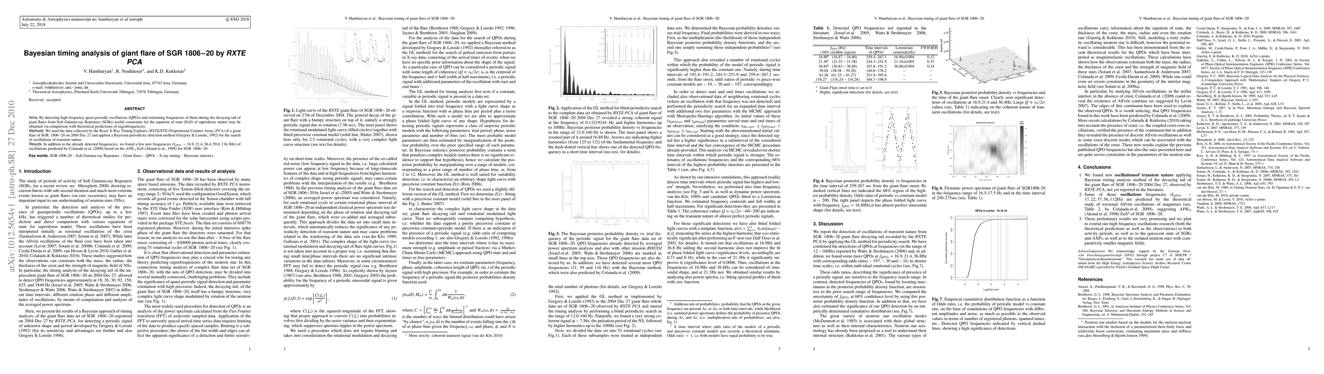 By detecting high frequency quasi-periodic oscillations (QPOs) and estimating frequencies of them during the decaying tail of giant flares from Soft Gamma-ray Repeaters (SGRs) useful constraints for the equation of state (EoS) of superdense matter may be obtained via comparison with theoretical predictions of eigenfrequencies. We used the data collected by the Rossi X-Ray Timing Explorer (RXTE/XTE) Proportional Counter Array (PCA) of a giant flare of SGR 1806-20 on 2004 Dec 27 and applied a Bayesian periodicity detection method (Gregory & Loredo, 1992) for the search of oscillations of transient nature. In addition to the already detected frequencies, we found a few new frequencies (f_{QPOs} ~ 16.9, 21.4, 36.4, 59.0, 116.3 Hz) of oscillations predicted by Colaiuda et al. (2009) based on the APR_{14} EoS (Akmal et al., 1998) for SGR 1806-20.