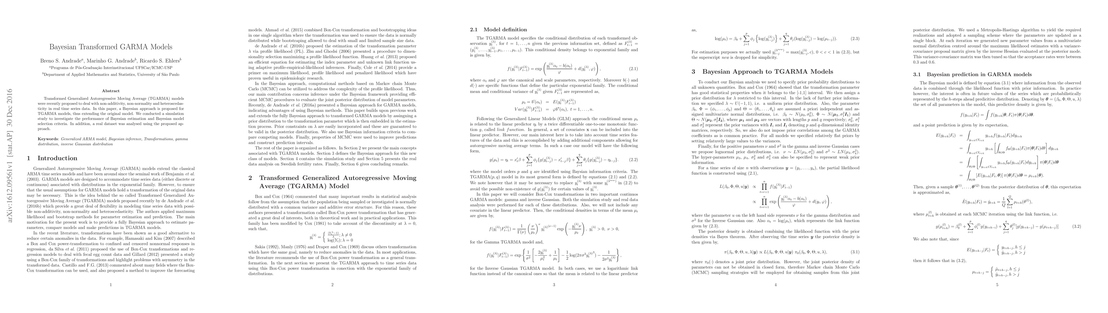 This paper proposes a Bayesian approach to Transformed Generalized Autoregressive Moving Average (TGARMA) models to address non-additivity, non-normality, and heteroscedasticity in time series data. A simulation study and real dataset analysis demonstrate the effectiveness of the Bayesian estimation and model selection criteria.