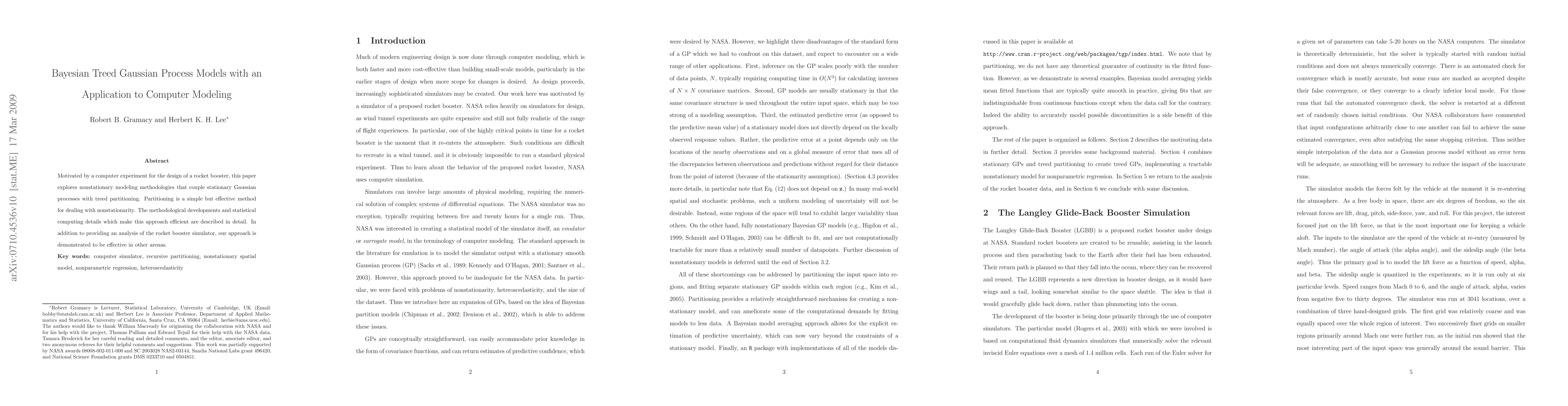 Researchers developed a method combining stationary Gaussian processes with treed partitioning for nonstationary modeling, demonstrating its effectiveness in computer modeling applications like rocket booster simulation.