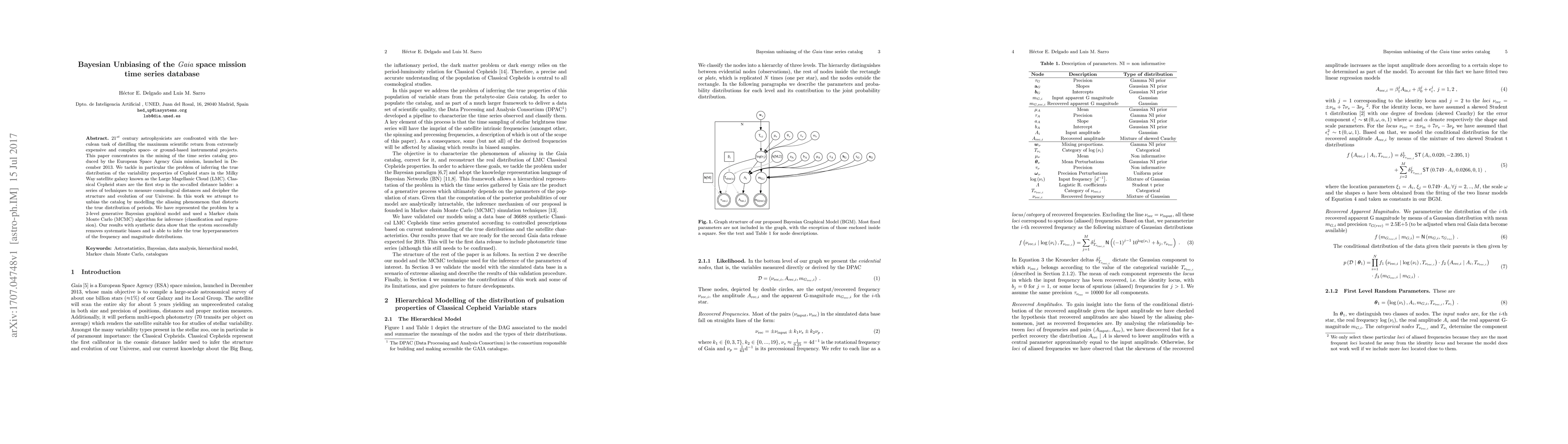 21 st century astrophysicists are confronted with the herculean task of distilling the maximum scientific return from extremely expensive and complex space- or ground-based instrumental projects. This paper concentrates in the mining of the time series catalog produced by the European Space Agency Gaia mission, launched in December 2013. We tackle in particular the problem of inferring the true distribution of the variability properties of Cepheid stars in the Milky Way satellite galaxy known as the Large Magellanic Cloud (LMC). Classical Cepheid stars are the first step in the so-called distance ladder: a series of techniques to measure cosmological distances and decipher the structure and evolution of our Universe. In this work we attempt to unbias the catalog by modelling the aliasing phenomenon that distorts the true distribution of periods. We have represented the problem by a 2-level generative Bayesian graphical model and used a Markov chain Monte Carlo (MCMC) algorithm for inference (classification and regression). Our results with synthetic data show that the system successfully removes systematic biases and is able to infer the true hyperparameters of the frequency and magnitude distributions.
