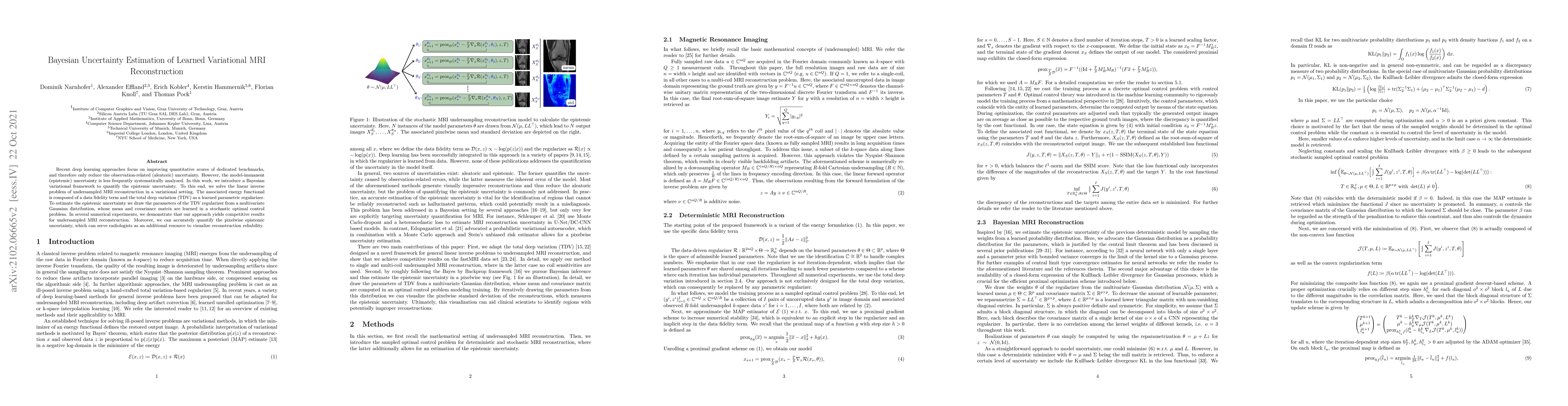 This paper introduces a Bayesian variational framework to quantify epistemic uncertainty in learned variational MRI reconstruction. The approach estimates uncertainty by drawing parameters from a Gaussian distribution, providing radiologists with a tool to visualize reconstruction reliability.