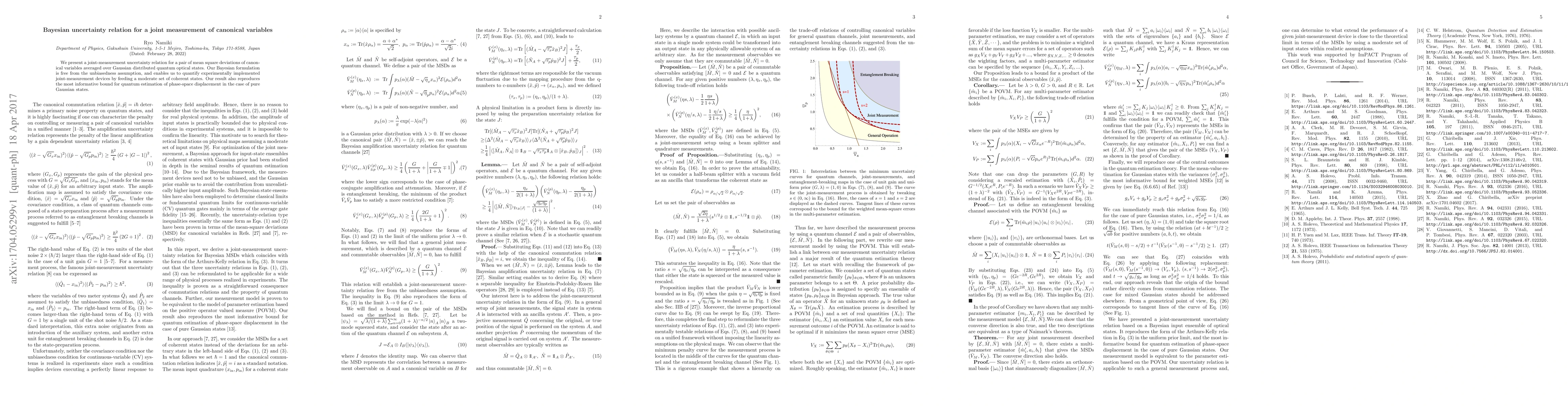 This paper introduces a Bayesian uncertainty relation for joint measurements of canonical variables, free from the unbiasedness assumption, and demonstrates its applicability to quantify experimental devices using Gaussian distributed quantum optical states. The result also aligns with the most informative bound for quantum estimation of phase-space displacement in pure Gaussian states.