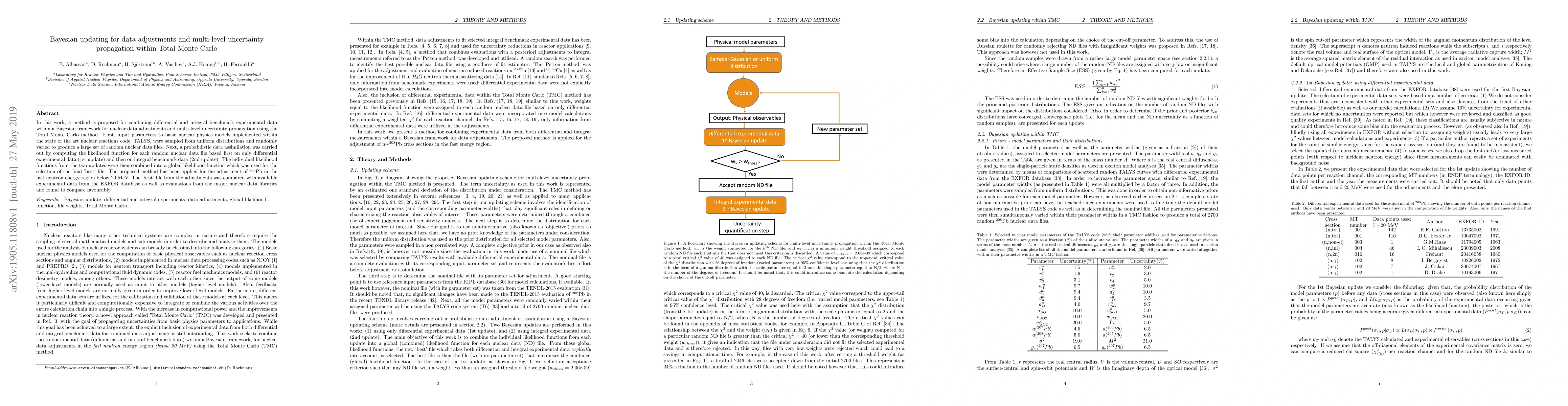 In this work, a method is proposed for combining differential and integral benchmark experimental data within a Bayesian framework for nuclear data adjustments and multi-level uncertainty propagation using the Total Monte Carlo method. First, input parameters to basic nuclear physics models implemented within the state of the art nuclear reactions code, TALYS, were sampled from uniform distributions and randomly varied to produce a large set of random nuclear data files. Next, a probabilistic data assimilation was carried out by computing the likelihood function for each random nuclear data file based first on only differential experimental data (1st update) and then on integral benchmark data (2nd update). The individual likelihood functions from the two updates were then combined into a global likelihood function which was used for the selection of the final 'best' file. The proposed method has been applied for the adjustment of $^{208}$Pb in the fast neutron energy region below 20 MeV. The 'best' file from the adjustments was compared with available experimental data from the EXFOR database as well as evaluations from the major nuclear data libraries and found to compare favourably.