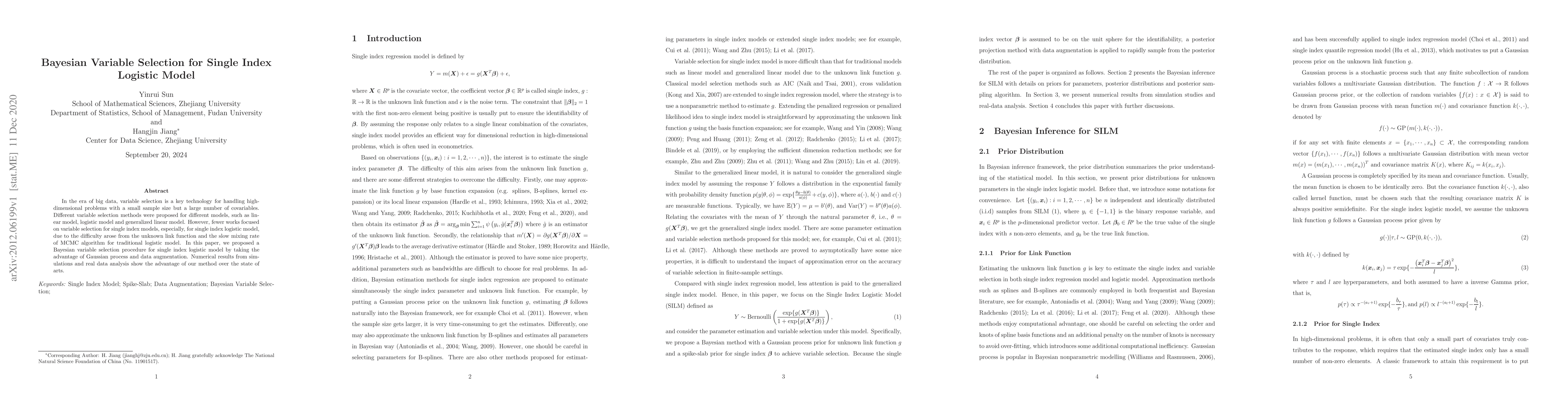 This paper proposes a Bayesian variable selection method for single index logistic models, leveraging Gaussian process and data augmentation to address the challenges of unknown link functions and slow mixing rates in traditional MCMC. Simulation and real data analyses demonstrate the method's superior performance compared to existing approaches.