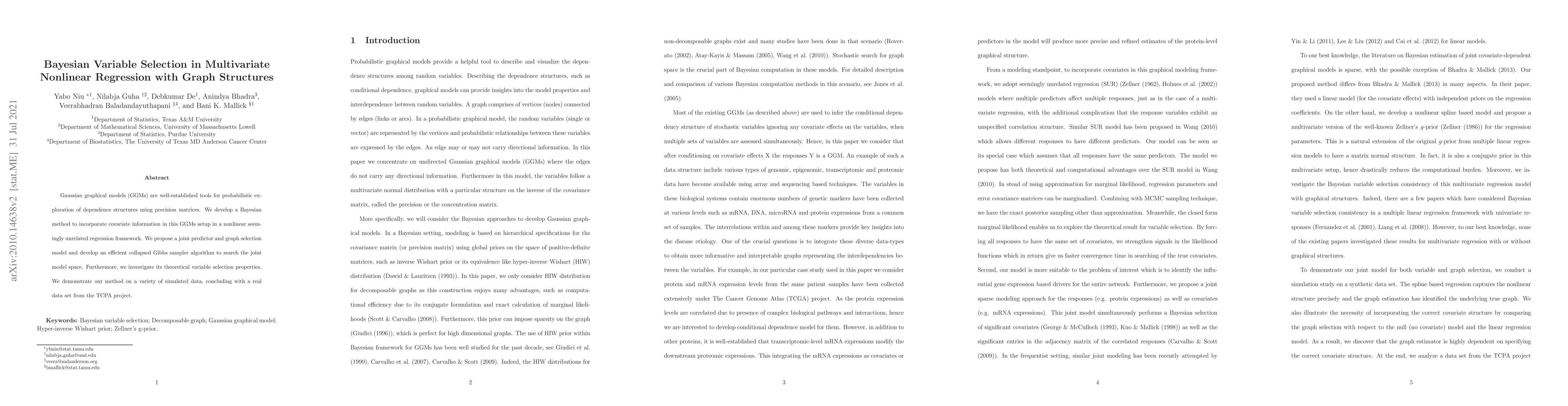 This paper develops a Bayesian method for variable selection in multivariate nonlinear regression within Gaussian graphical models, incorporating covariate information. It proposes a joint predictor and graph selection model with an efficient collapsed Gibbs sampler, and demonstrates its effectiveness through simulations and a real data application from the TCPA project.