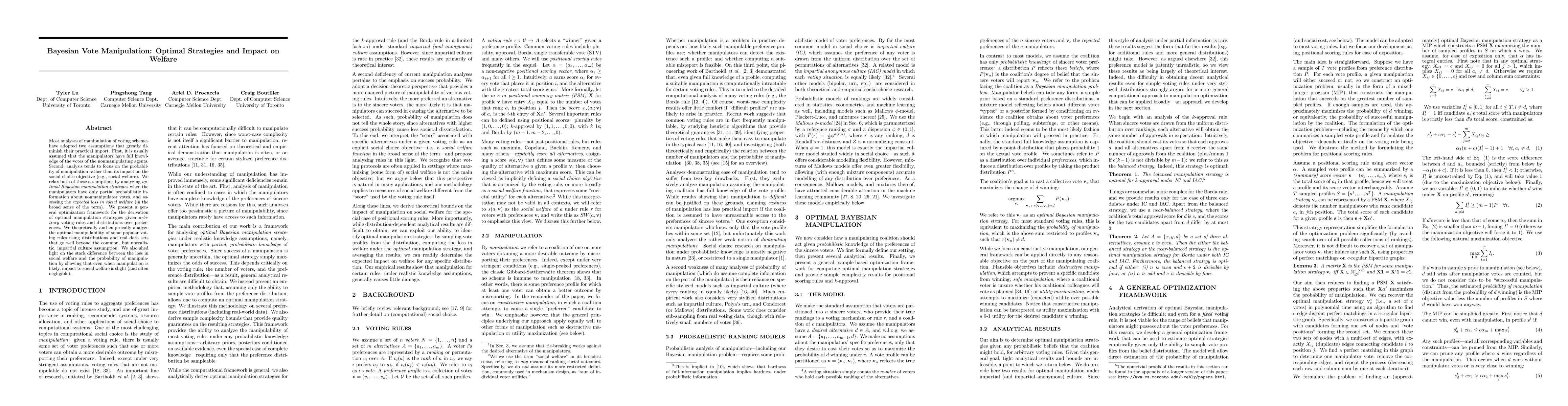 Researchers develop a framework to analyze optimal Bayesian vote manipulation strategies under partial information conditions, finding that even likely manipulation can have a negligible impact on social welfare.