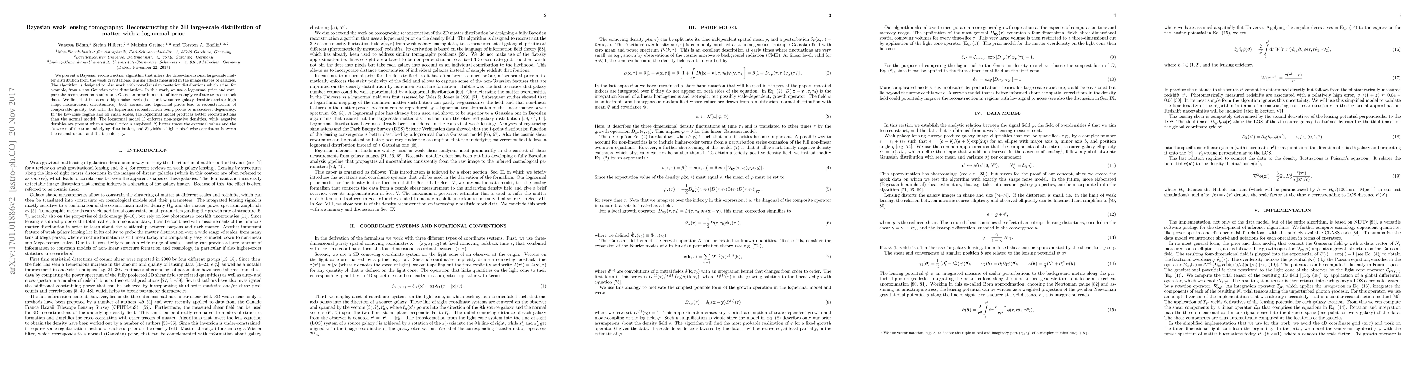 A new Bayesian reconstruction algorithm uses a lognormal prior to improve weak lensing tomography reconstructions, especially in low-noise regimes and on small scales, by better tracing extreme values and yielding higher correlation with true density.